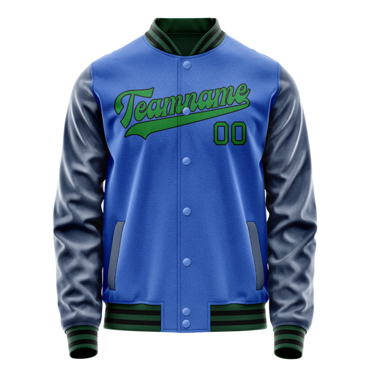 Custom Electric-Blue Neon-Green Solid Color Varsity Letterman Jacket