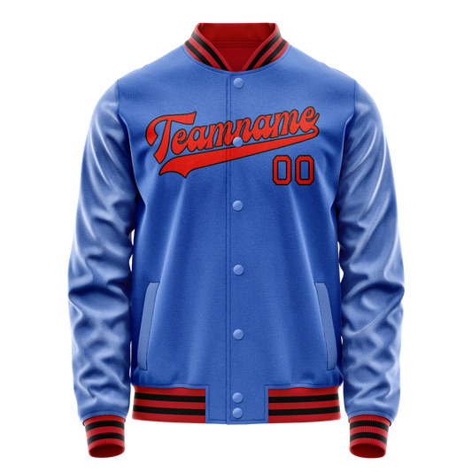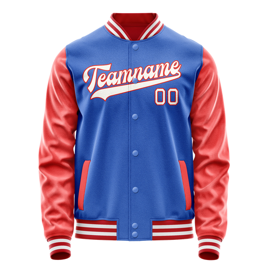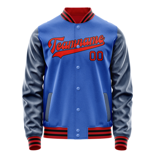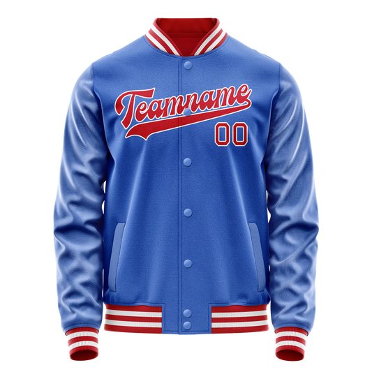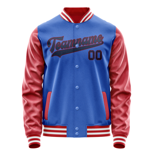 Custom Electric-Blue Crimson Solid Color Varsity Letterman Jacket
