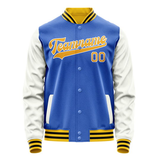 Custom Electric-Blue White Solid Color Varsity Letterman Jacket