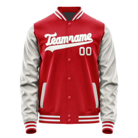 Custom Red Gray Solid Color Varsity Letterman Jacket