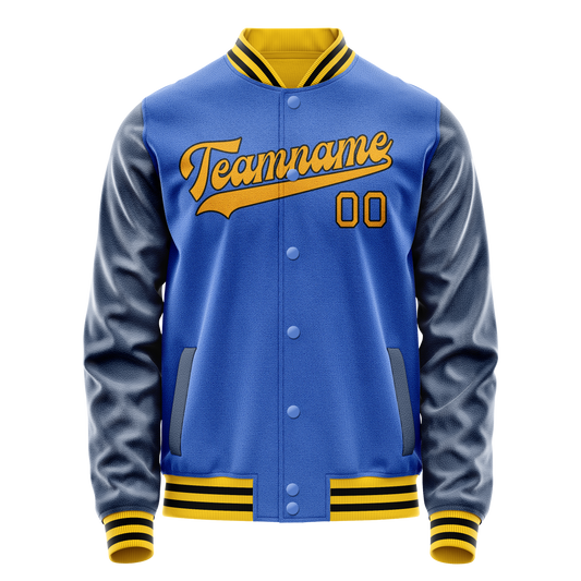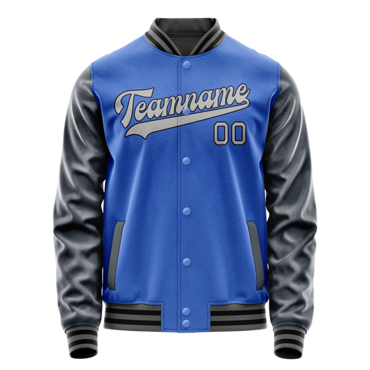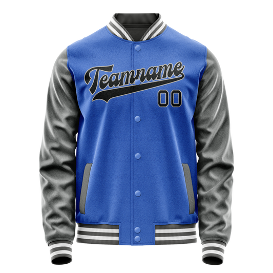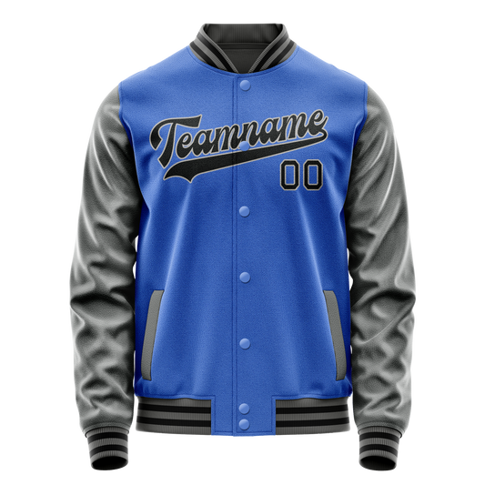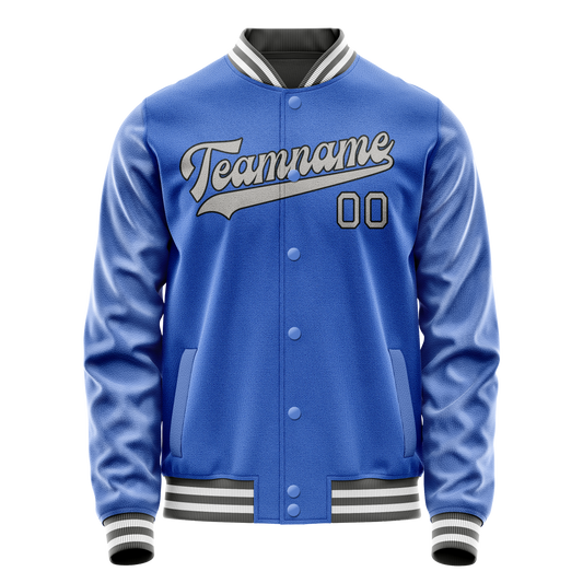 Custom Electric-Blue Gray Solid Color Varsity Letterman Jacket
