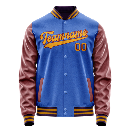 Custom Electric-Blue Brown Solid Color Varsity Letterman Jacket