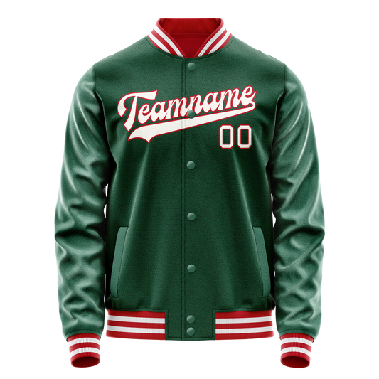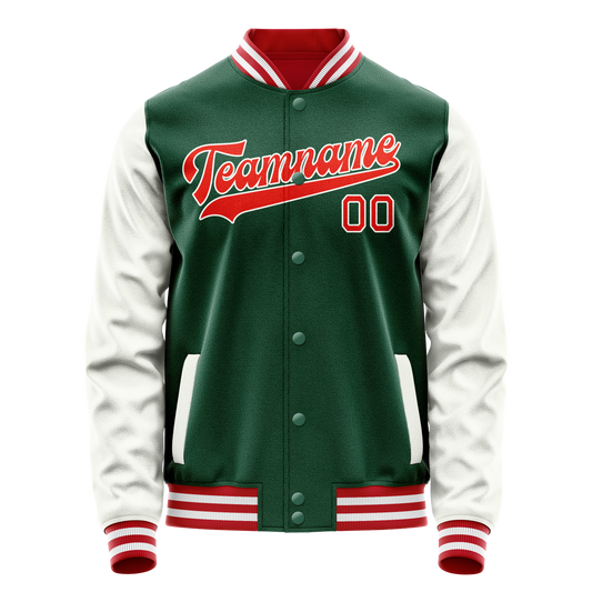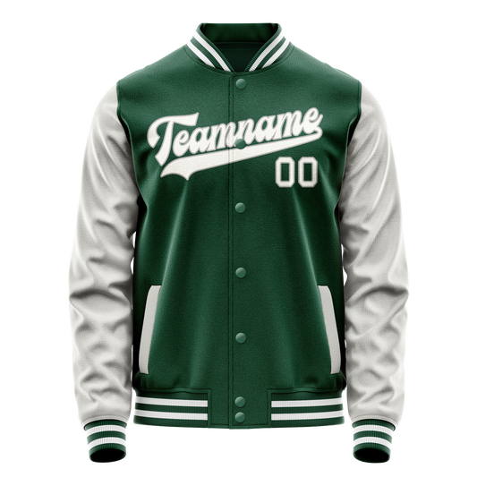 Custom Kelly-Green White Solid Color Varsity Letterman Jacket