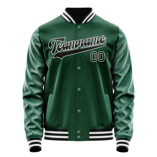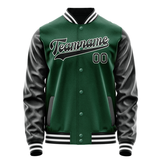 Custom Kelly-Green Black Solid Color Varsity Letterman Jacket