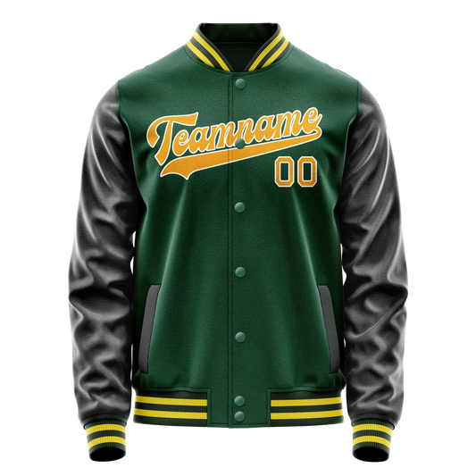 Custom Kelly-Green Gold Solid Color Varsity Letterman Jacket