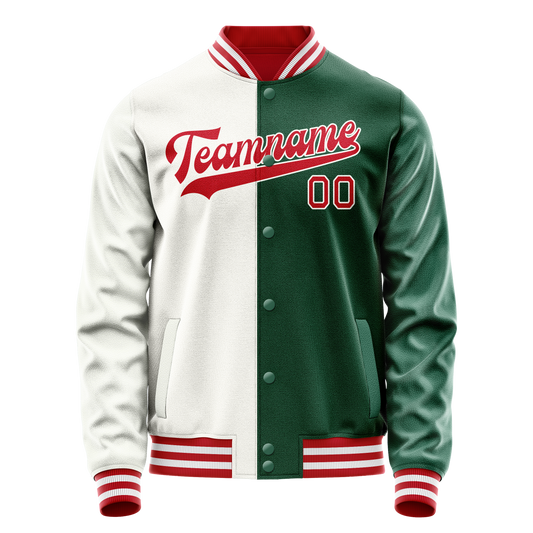 Custom Kelly-Green White Split Varsity Letterman Jacket