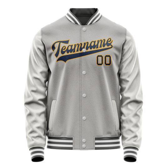 Custom Gray Purple Solid Color Varsity Letterman Jacket