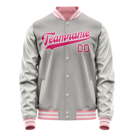 Custom Gray Pink Solid Color Varsity Letterman Jacket