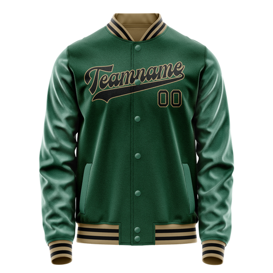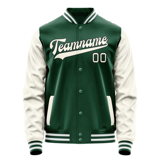 Custom Kelly-Green Cream Solid Color Varsity Letterman Jacket