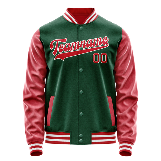 Custom Kelly-Green Pink Solid Color Varsity Letterman Jacket