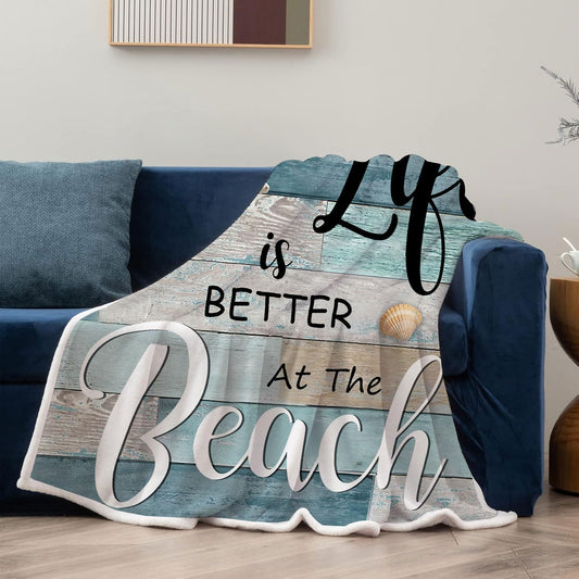 Blanket for Beach Lovers Gifts, “Life is Better at the Beach”, From Family, Birthday, Christmas, Holiday, Motivational, Inspirational