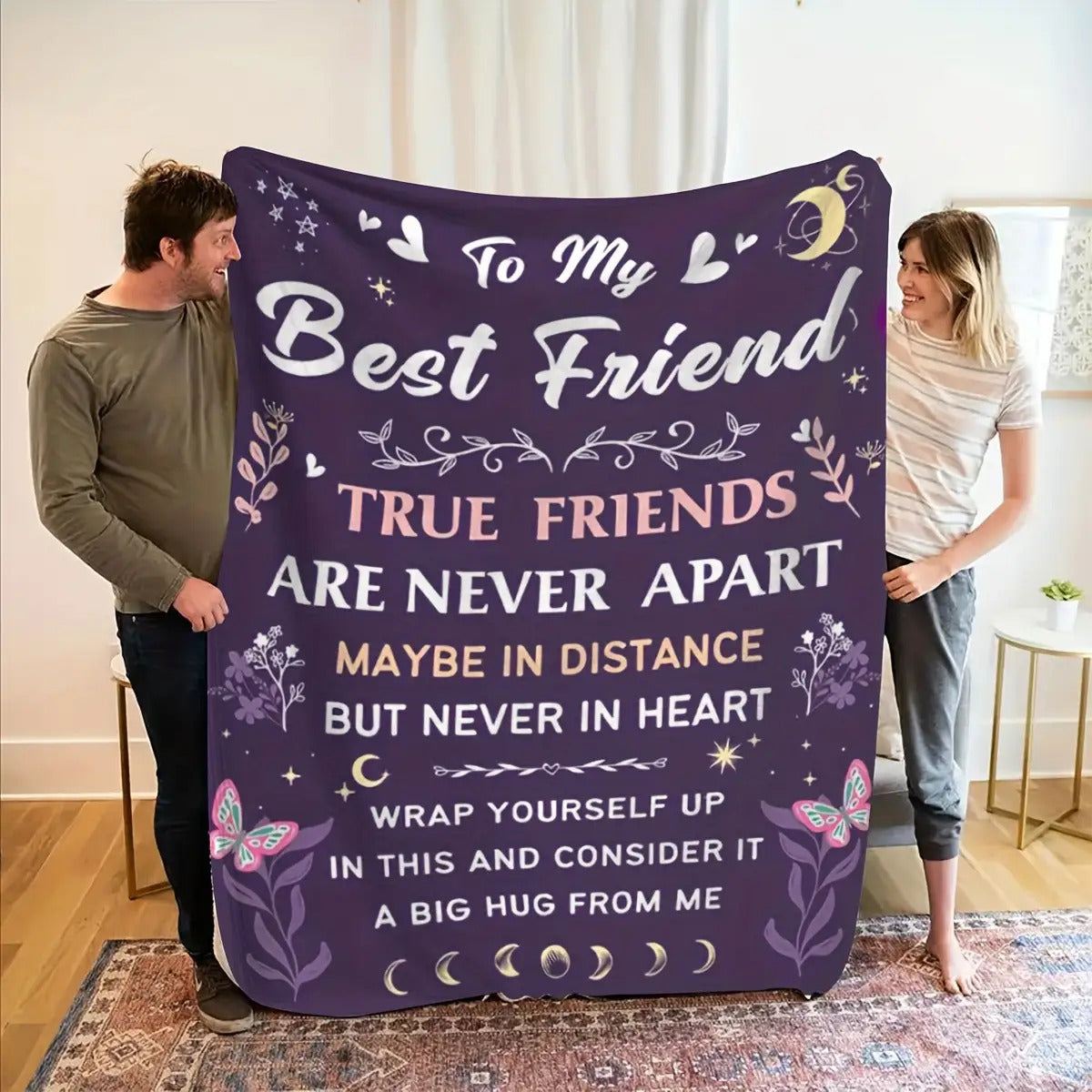 Blanket for Best Friend Gifts - True Friends Are Never Apart Maybe in Distance But Never in Heart - From Friend, Birthday, Christmas, Everyday Encouragement, Inspirational