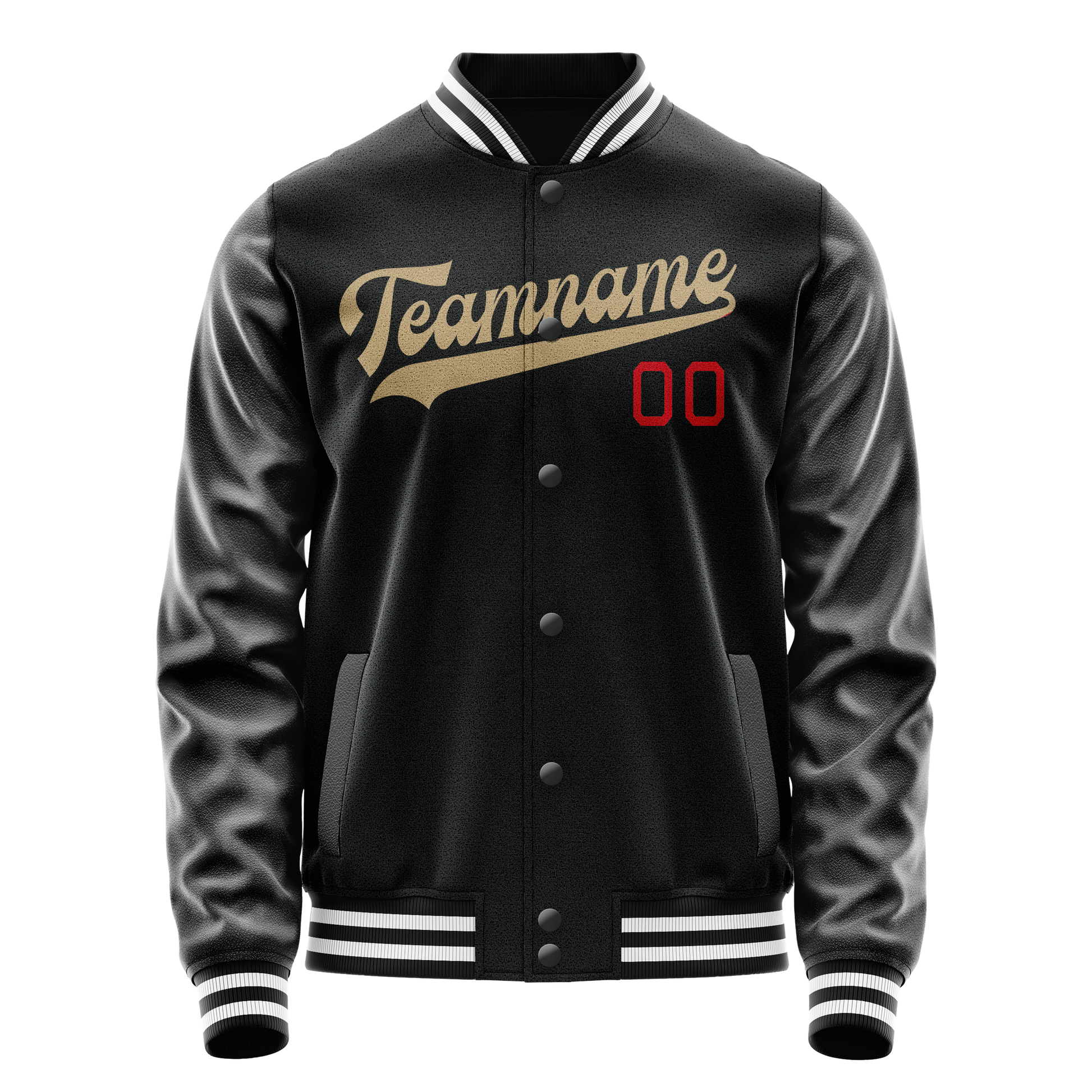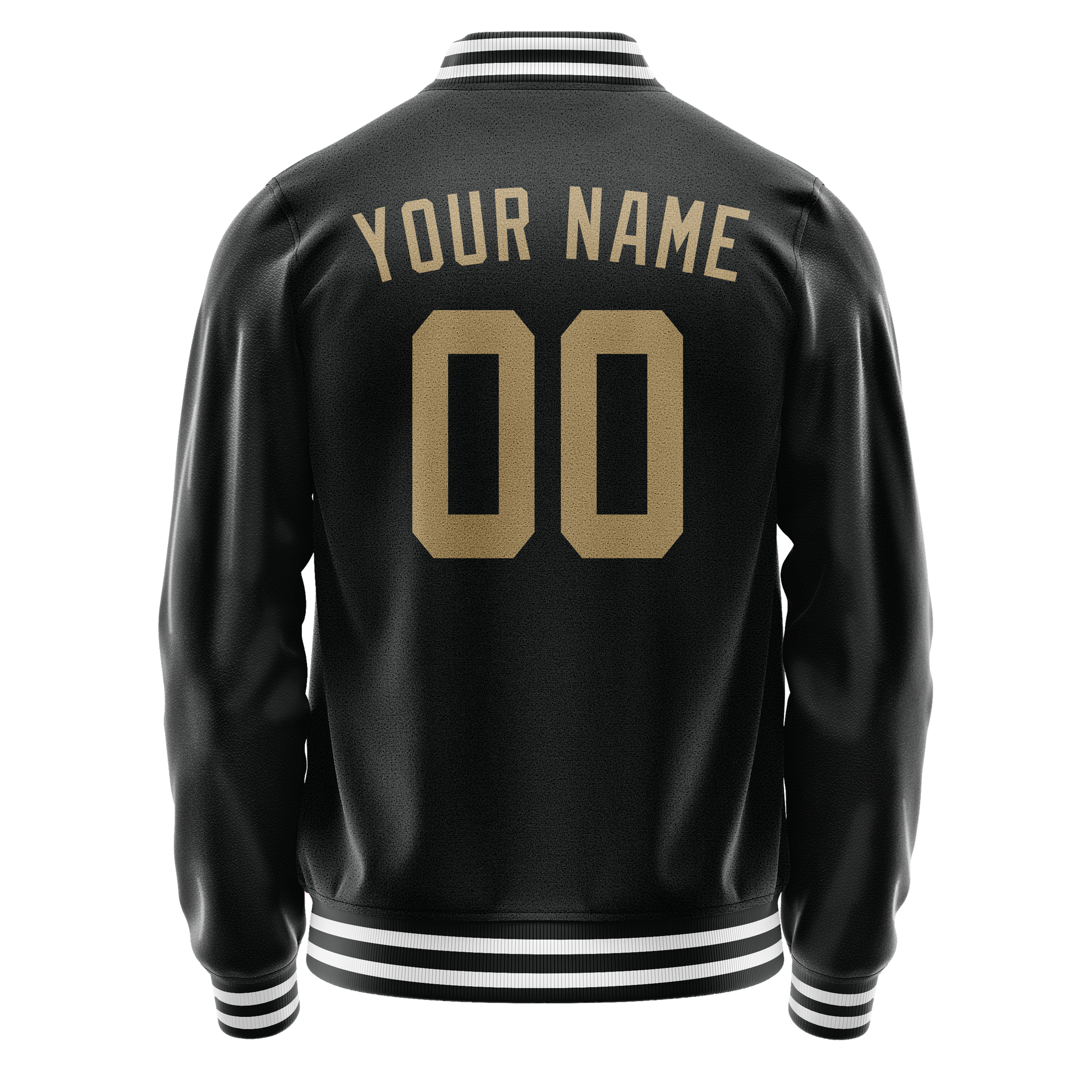 Custom Black Cream Solid Color Varsity Letterman Jacket