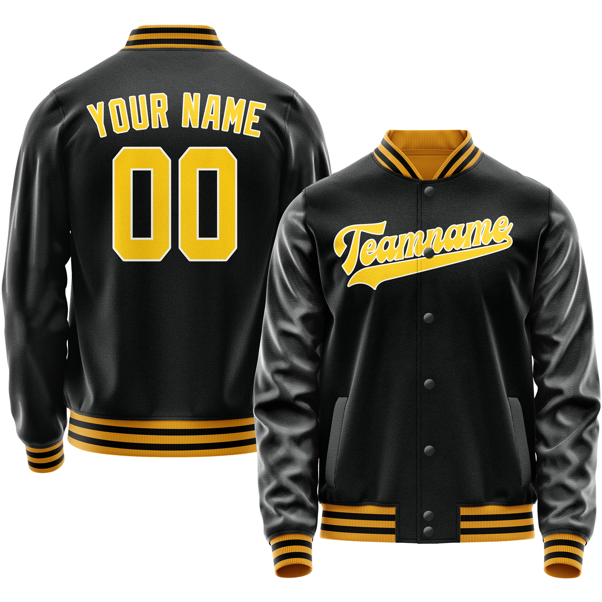 Custom Black Gold Solid Color Varsity Letterman Jacket