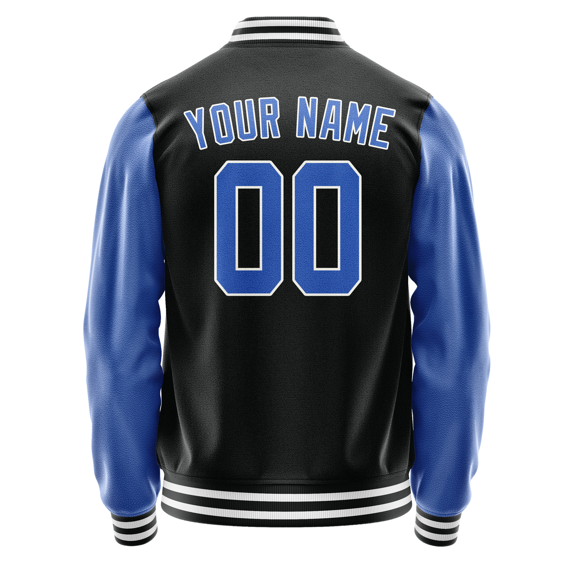 Custom Black Light-Blue Solid Color Varsity Letterman Jacket