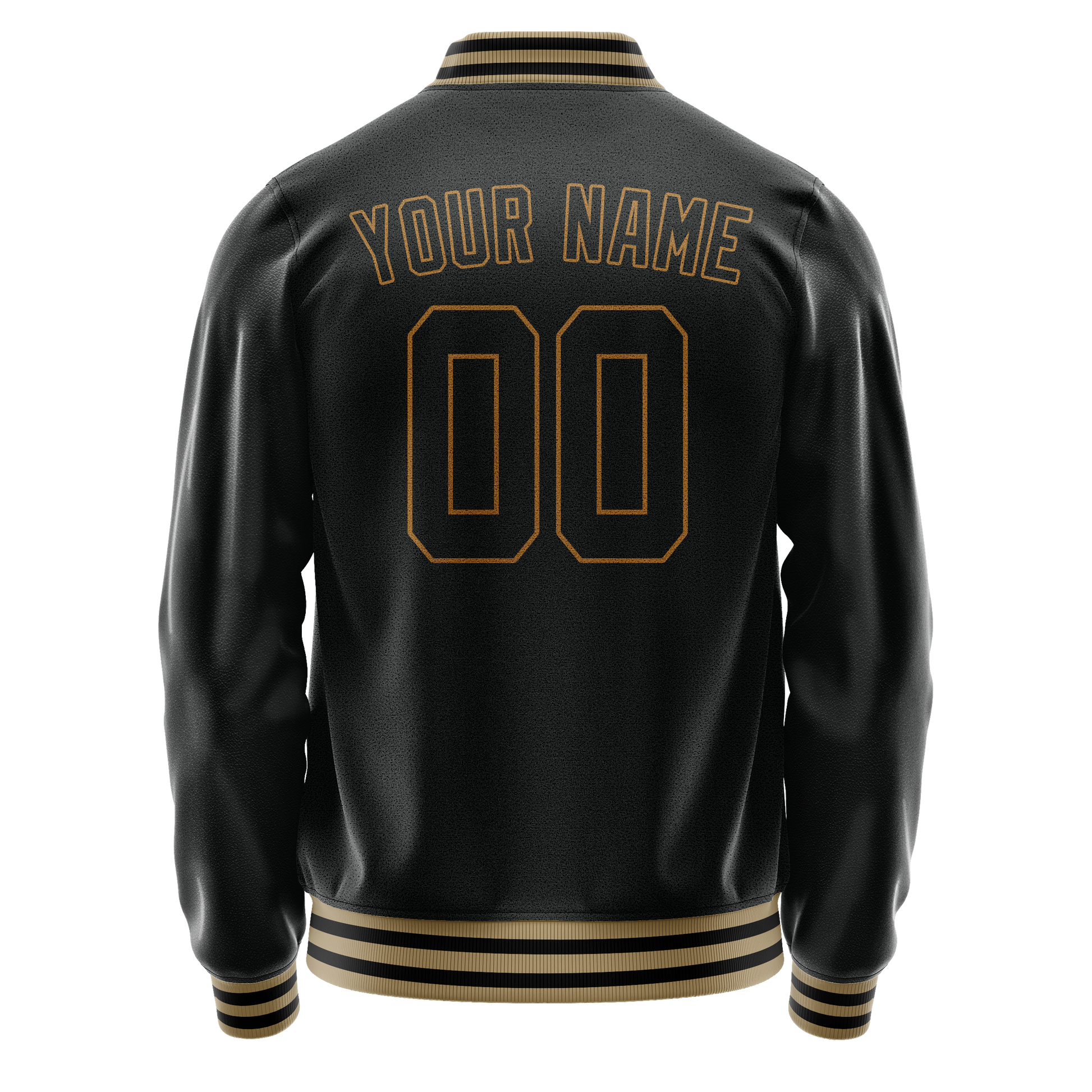 Custom Black Old-Gold Solid Color Varsity Letterman Jacket
