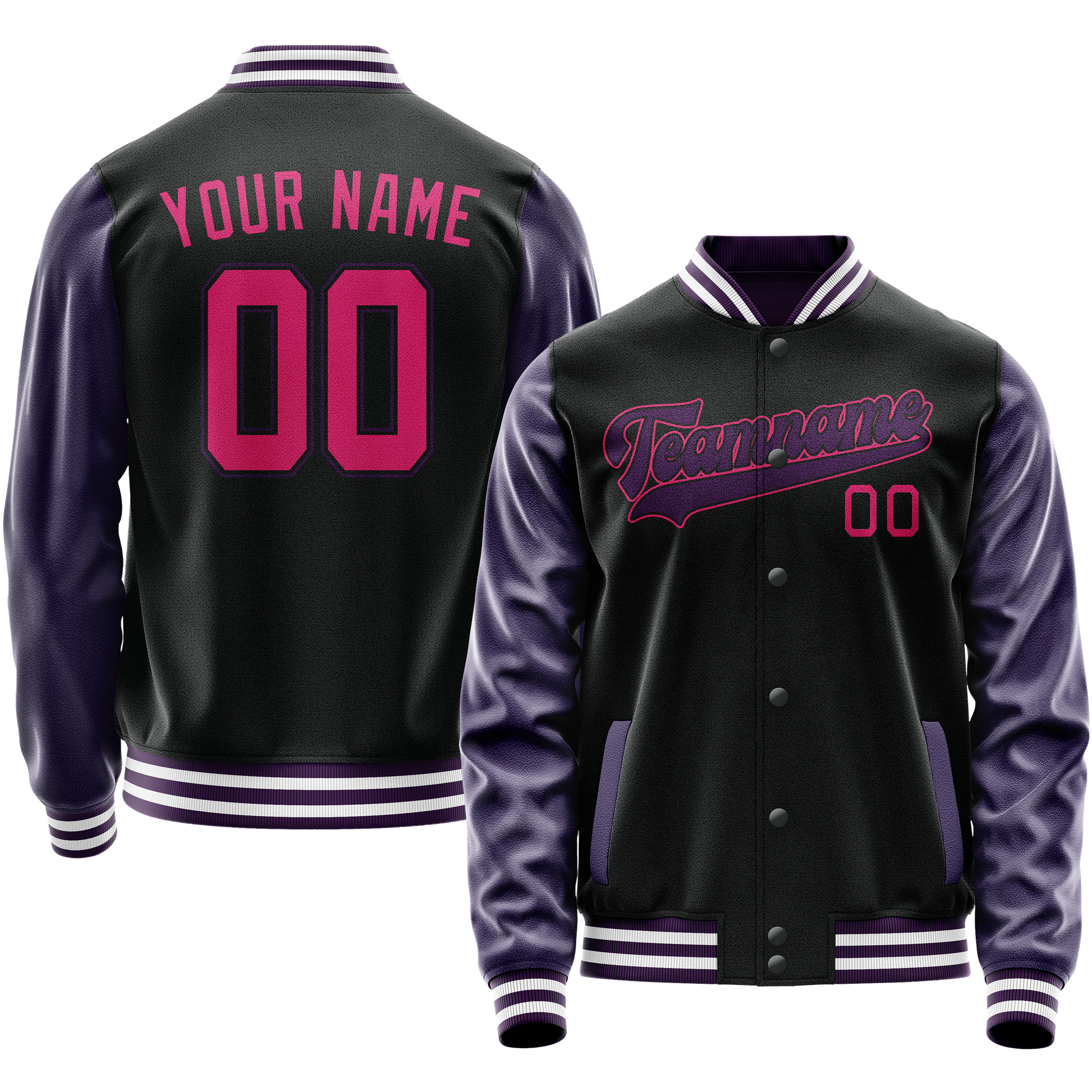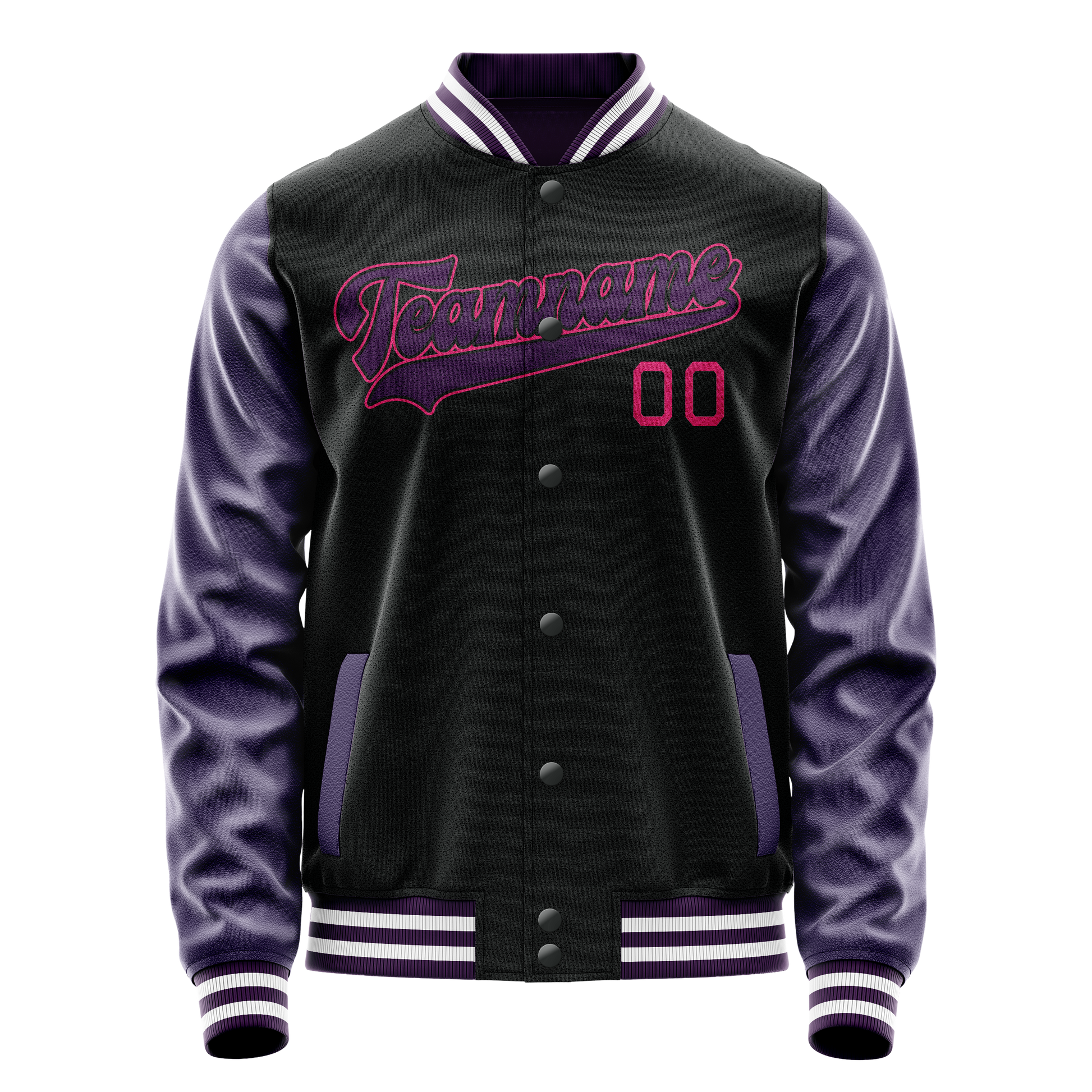 Custom Black Purple Solid Color Varsity Letterman Jacket