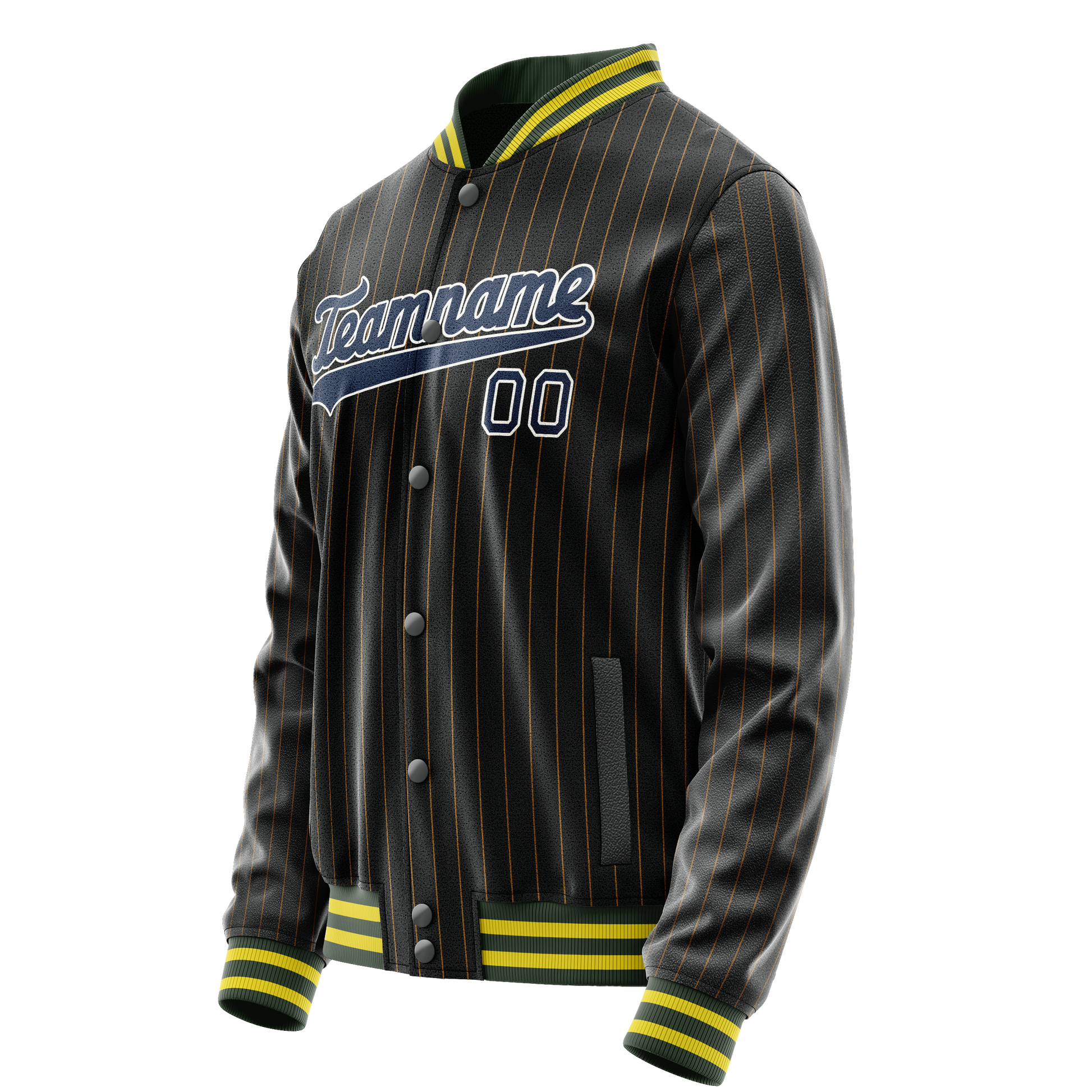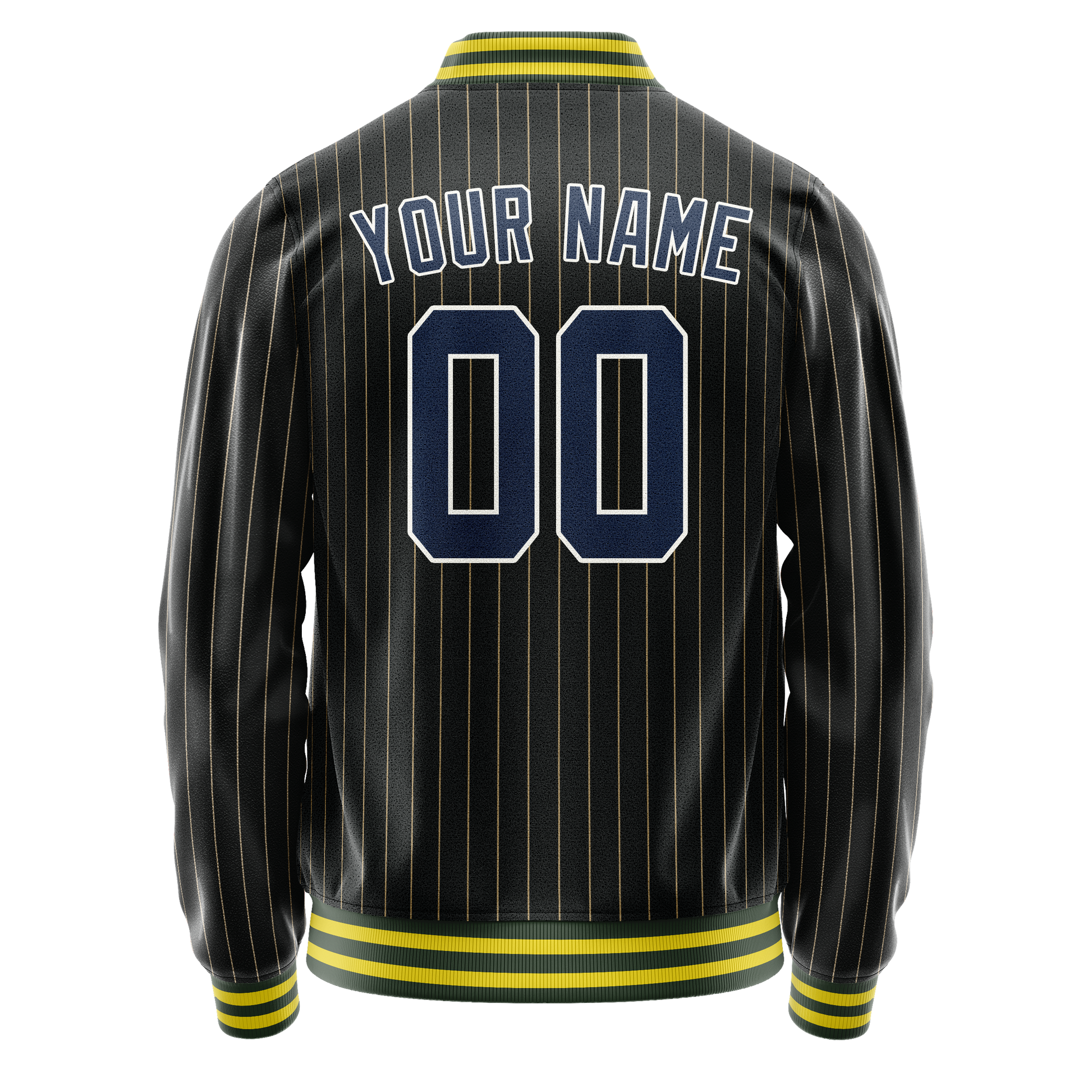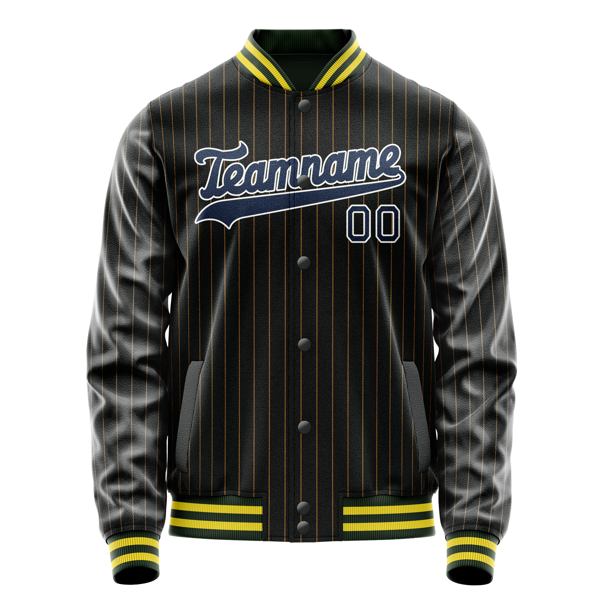 Custom Black Royal Old Gold Pinstripe Varsity Letterman Jacket