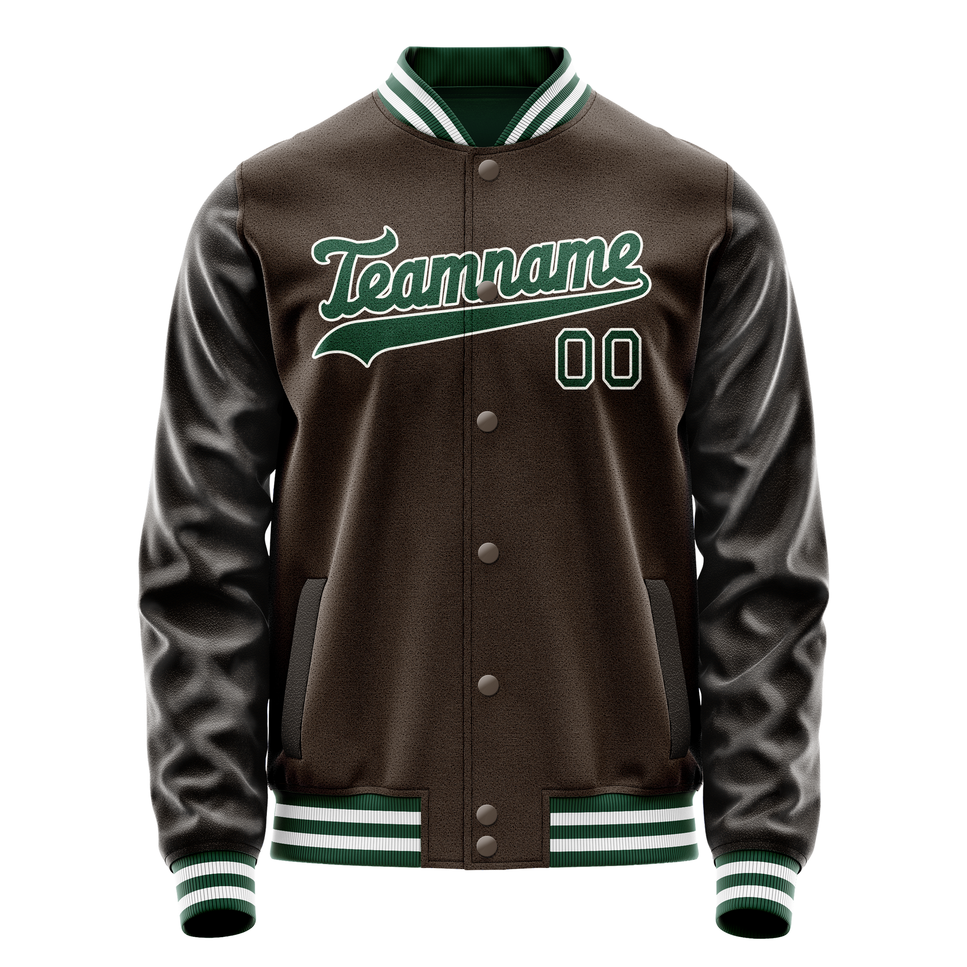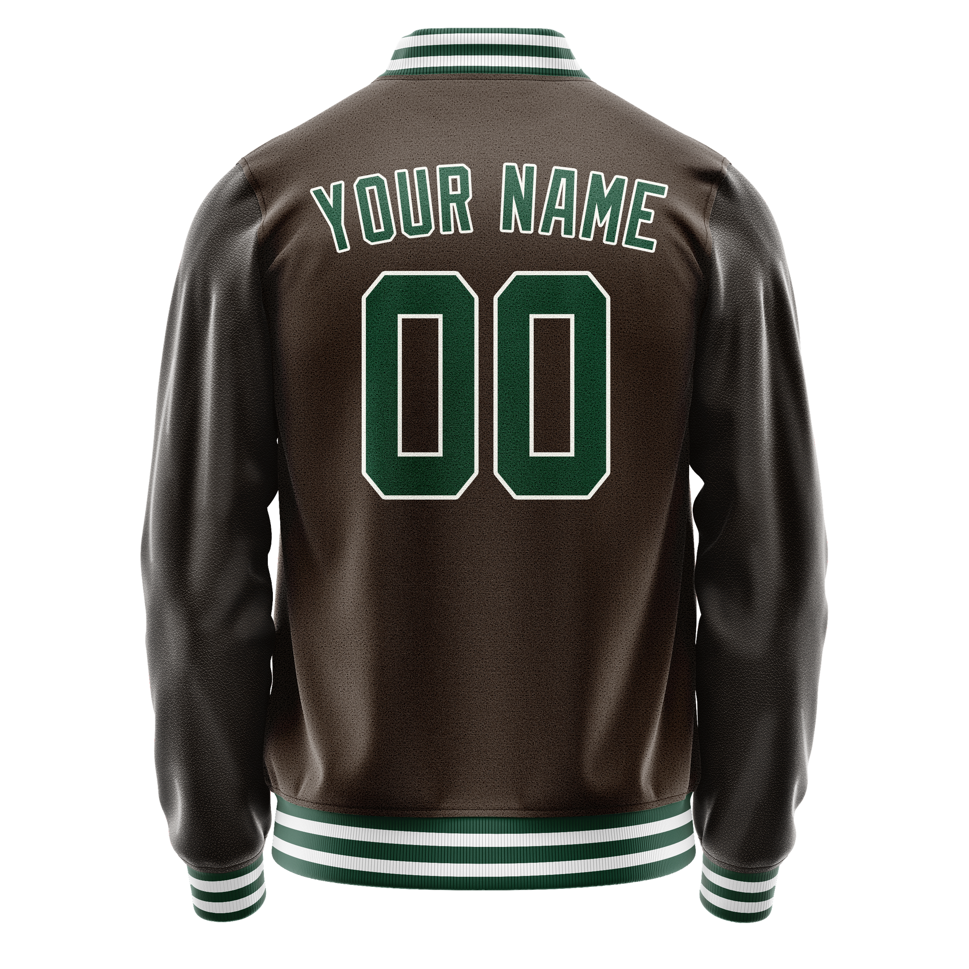 Custom Brown Kelly-Green Solid Color Varsity Letterman Jacket