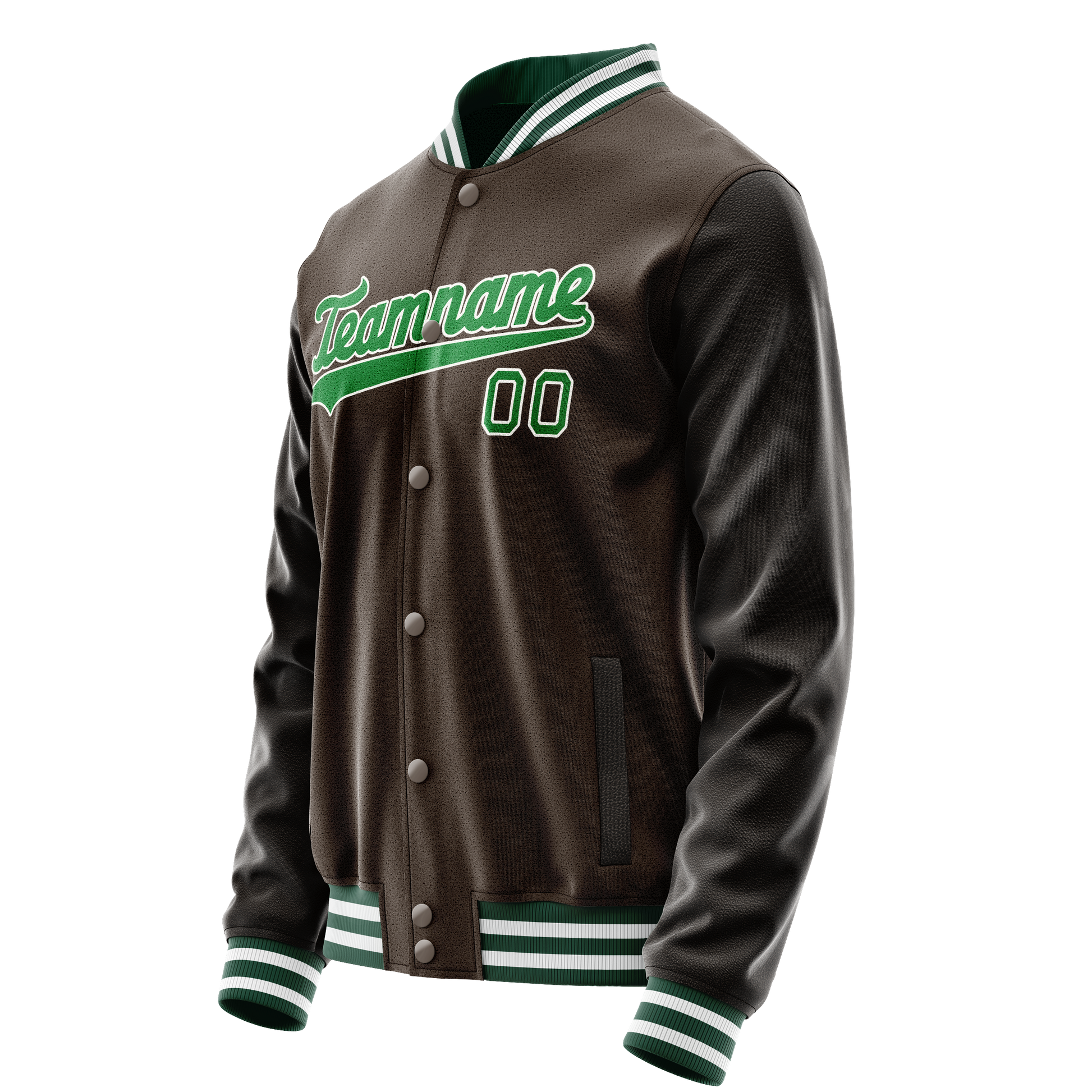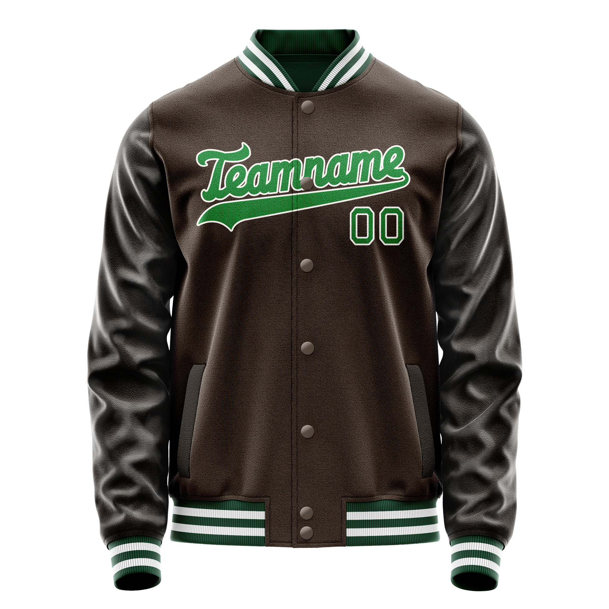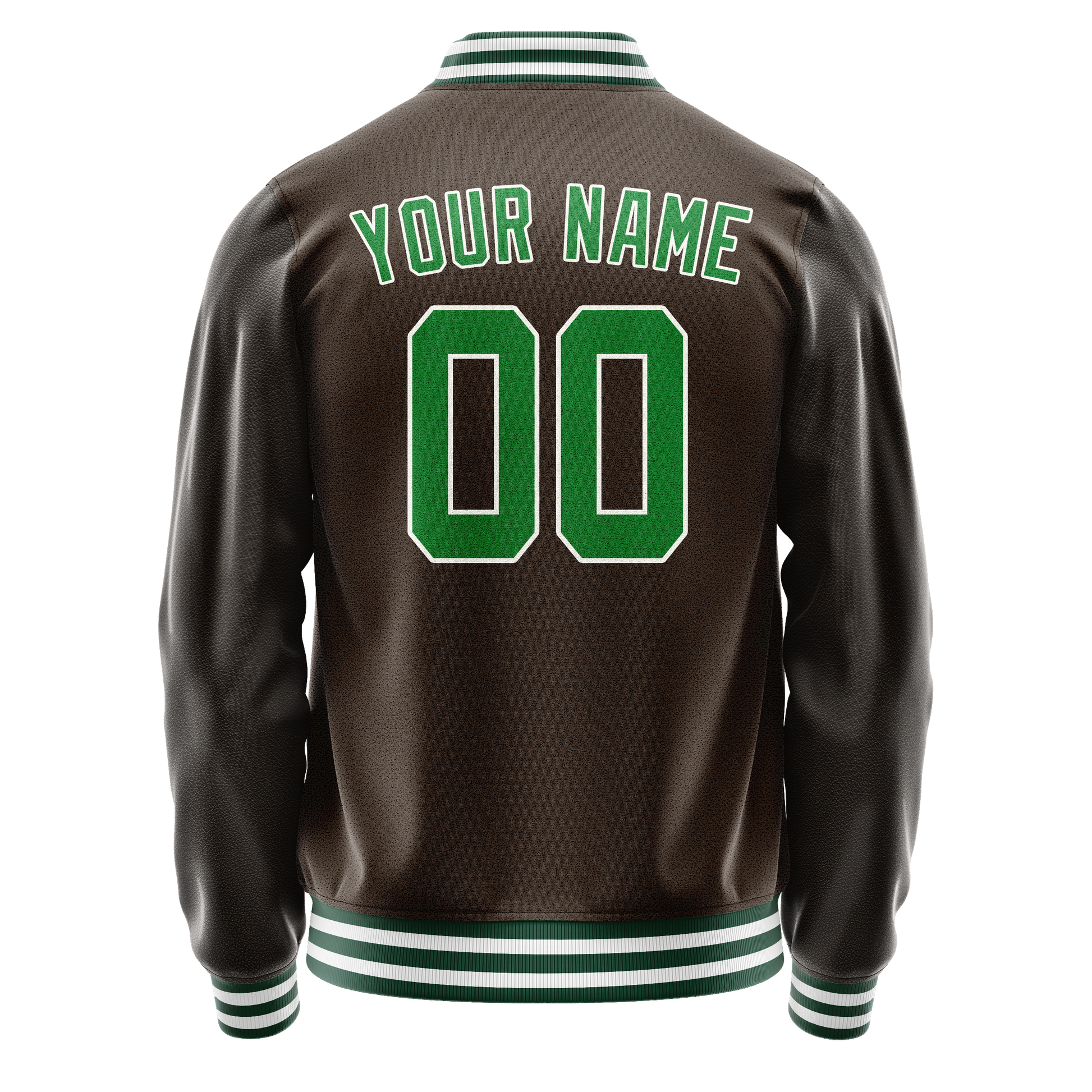 Custom Brown Neon-Green Solid Color Varsity Letterman Jacket