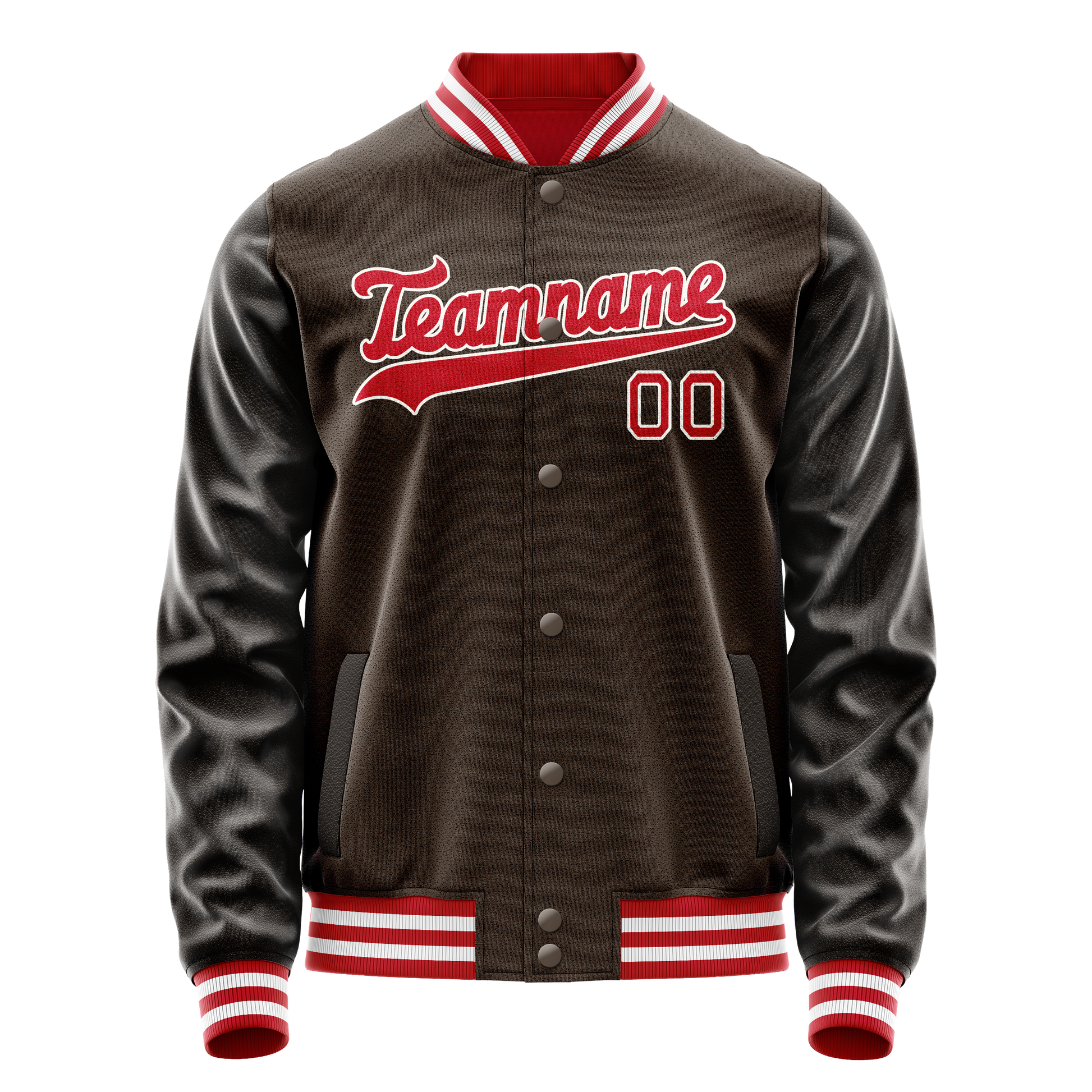 Custom Brown Orange Solid Color Varsity Letterman Jacket