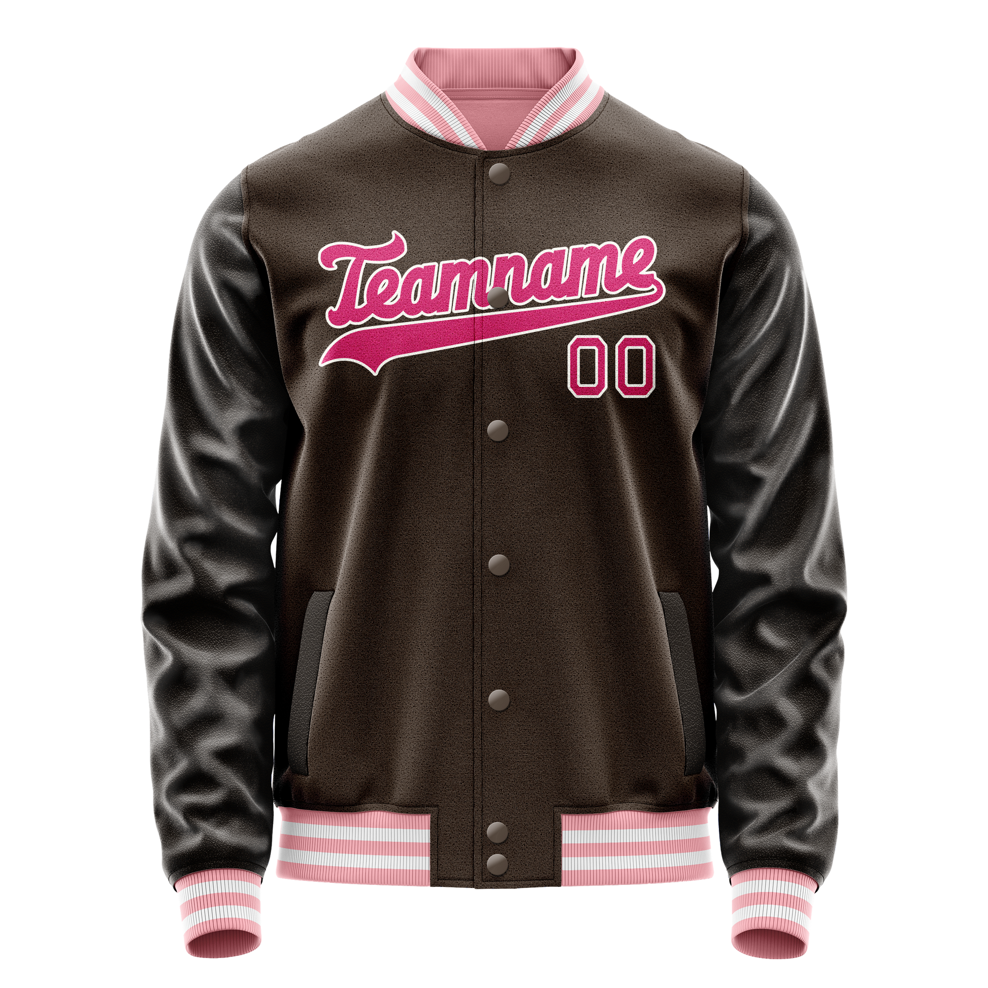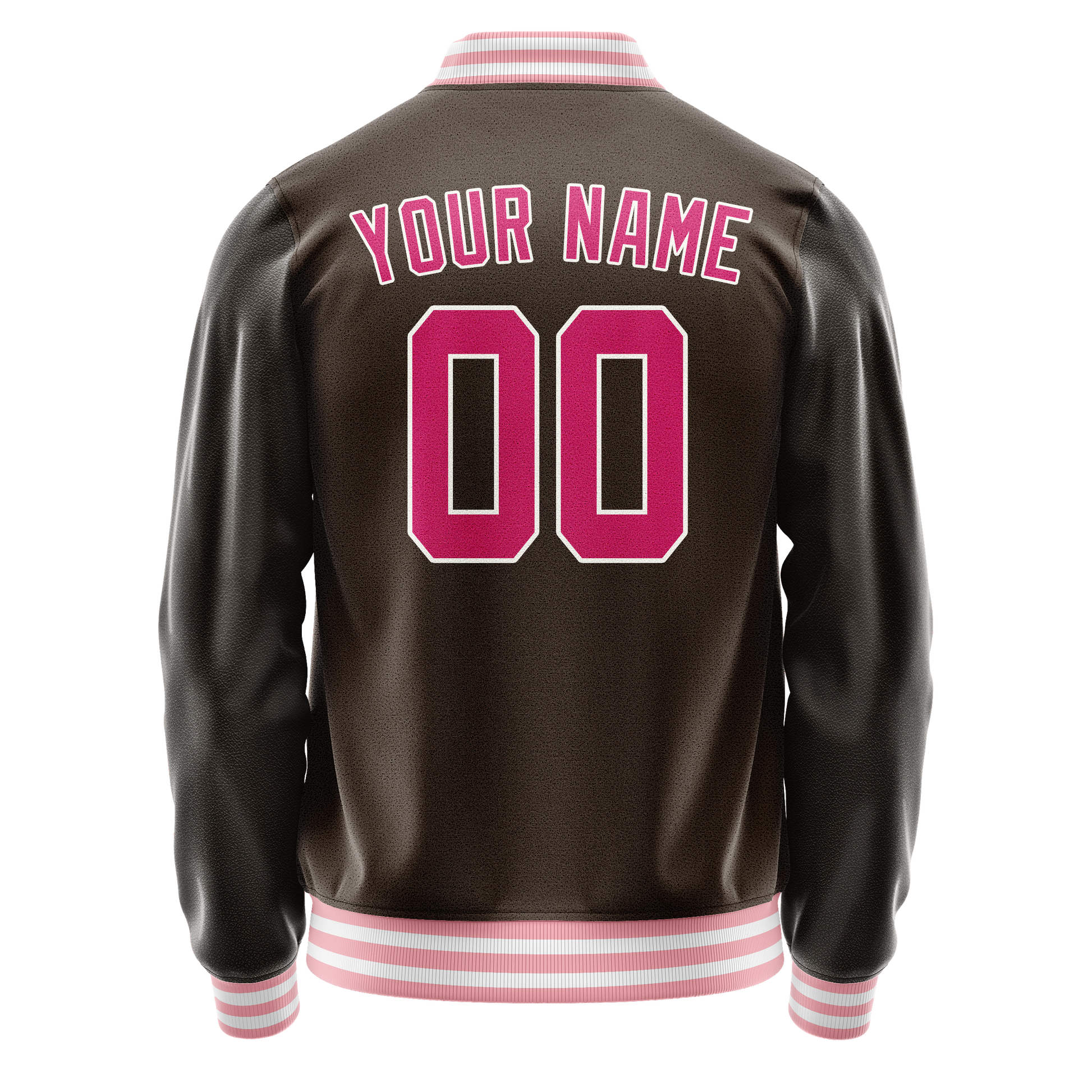 Custom Brown Pink Solid Color Varsity Letterman Jacket