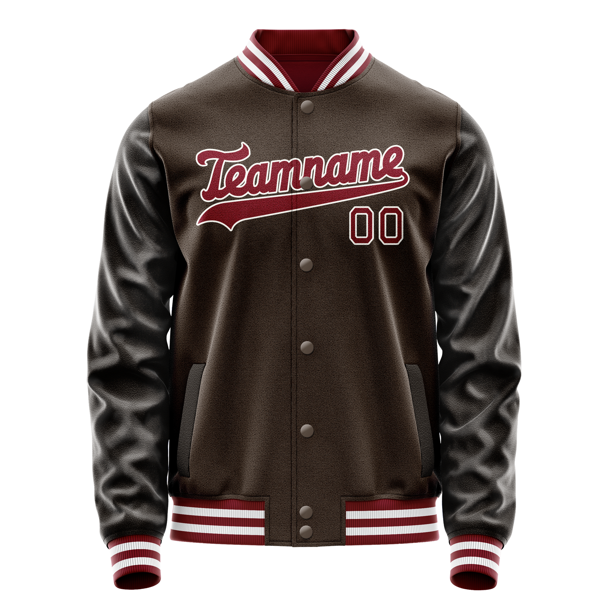 Custom Brown Red Solid Color Varsity Letterman Jacket