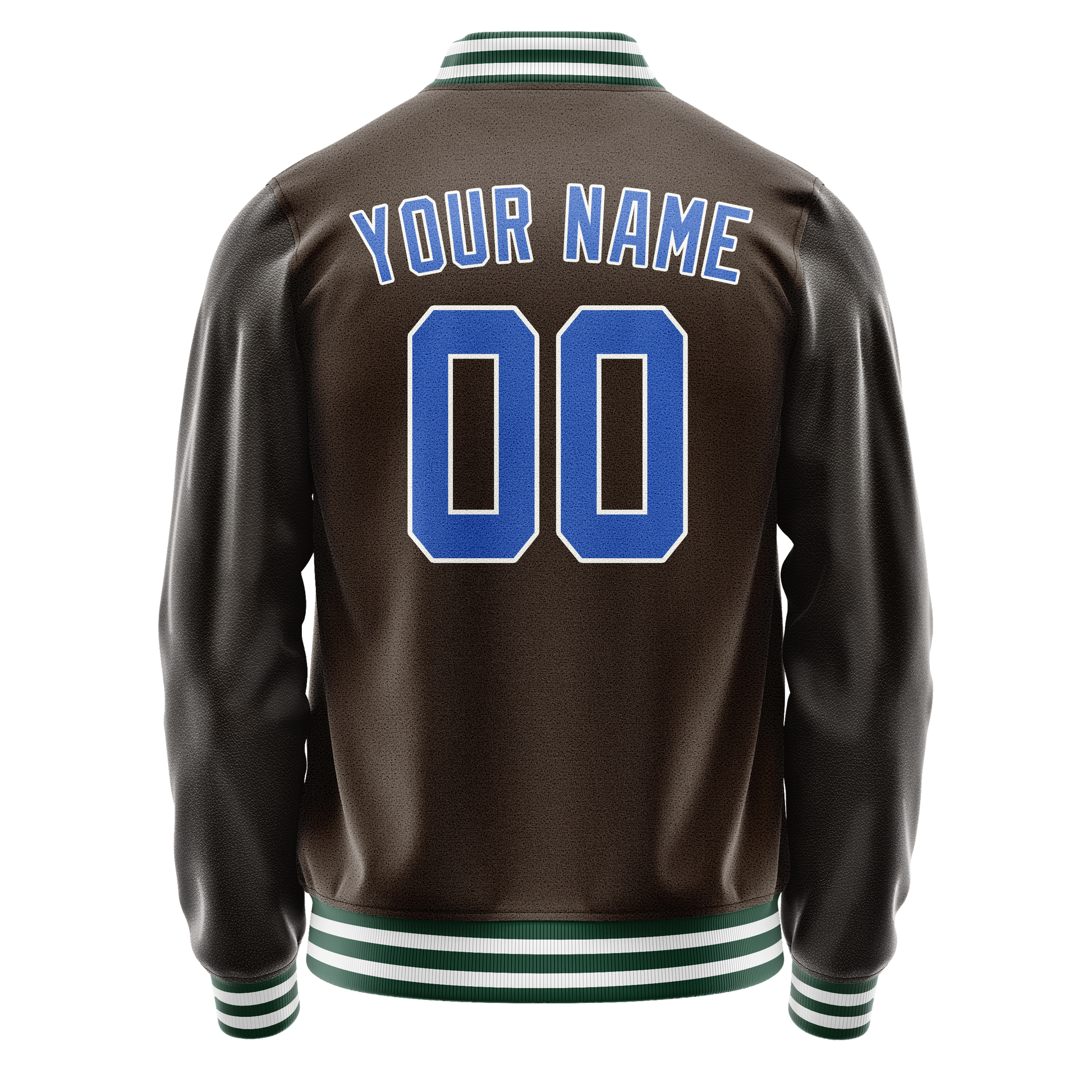 Custom Brown Teal Solid Color Varsity Letterman Jacket