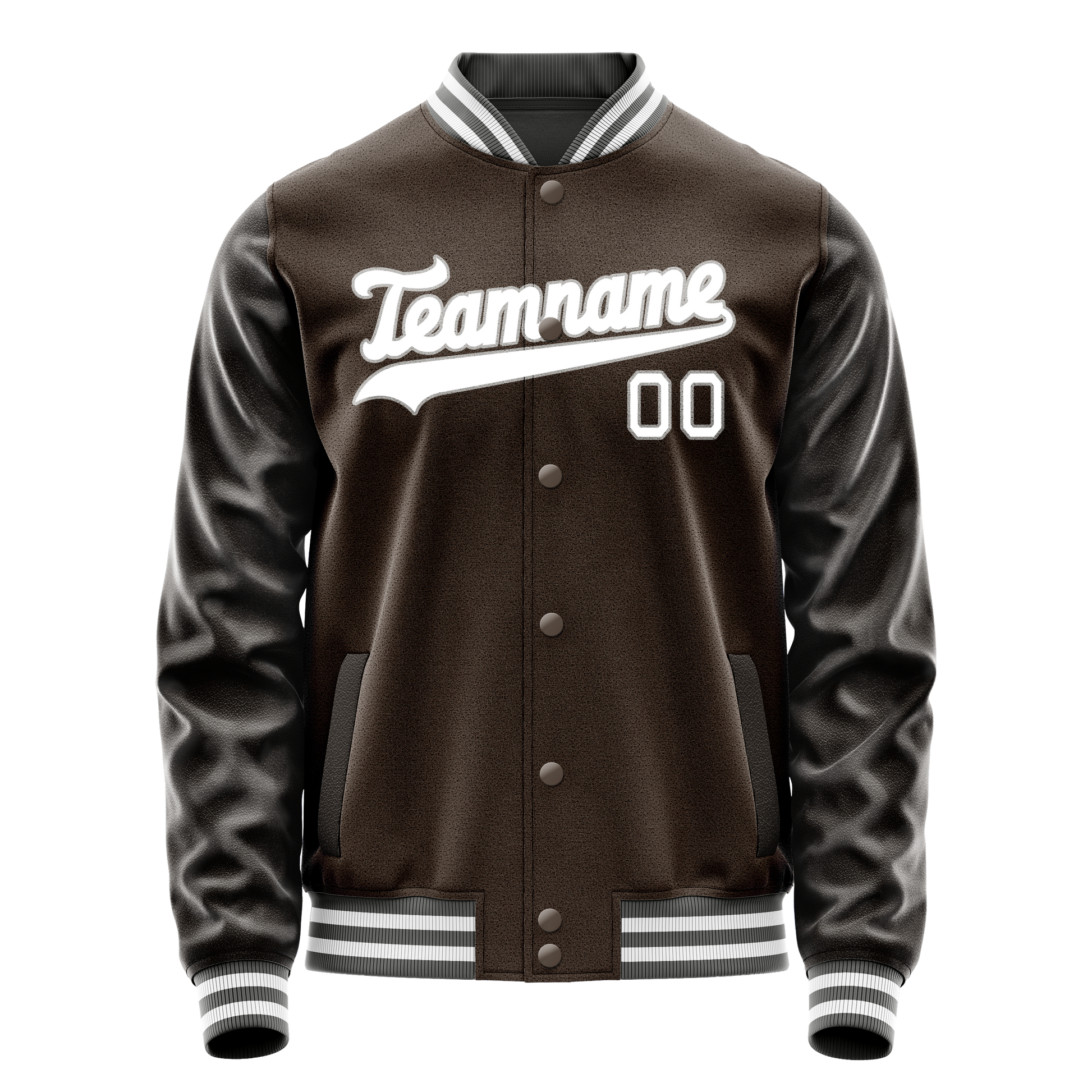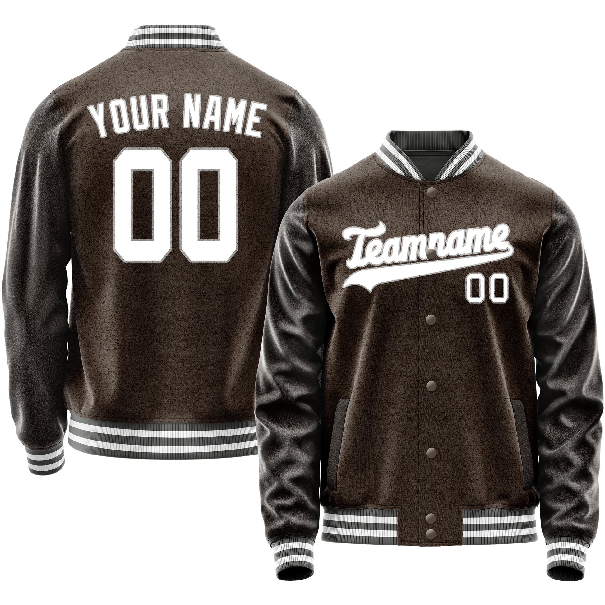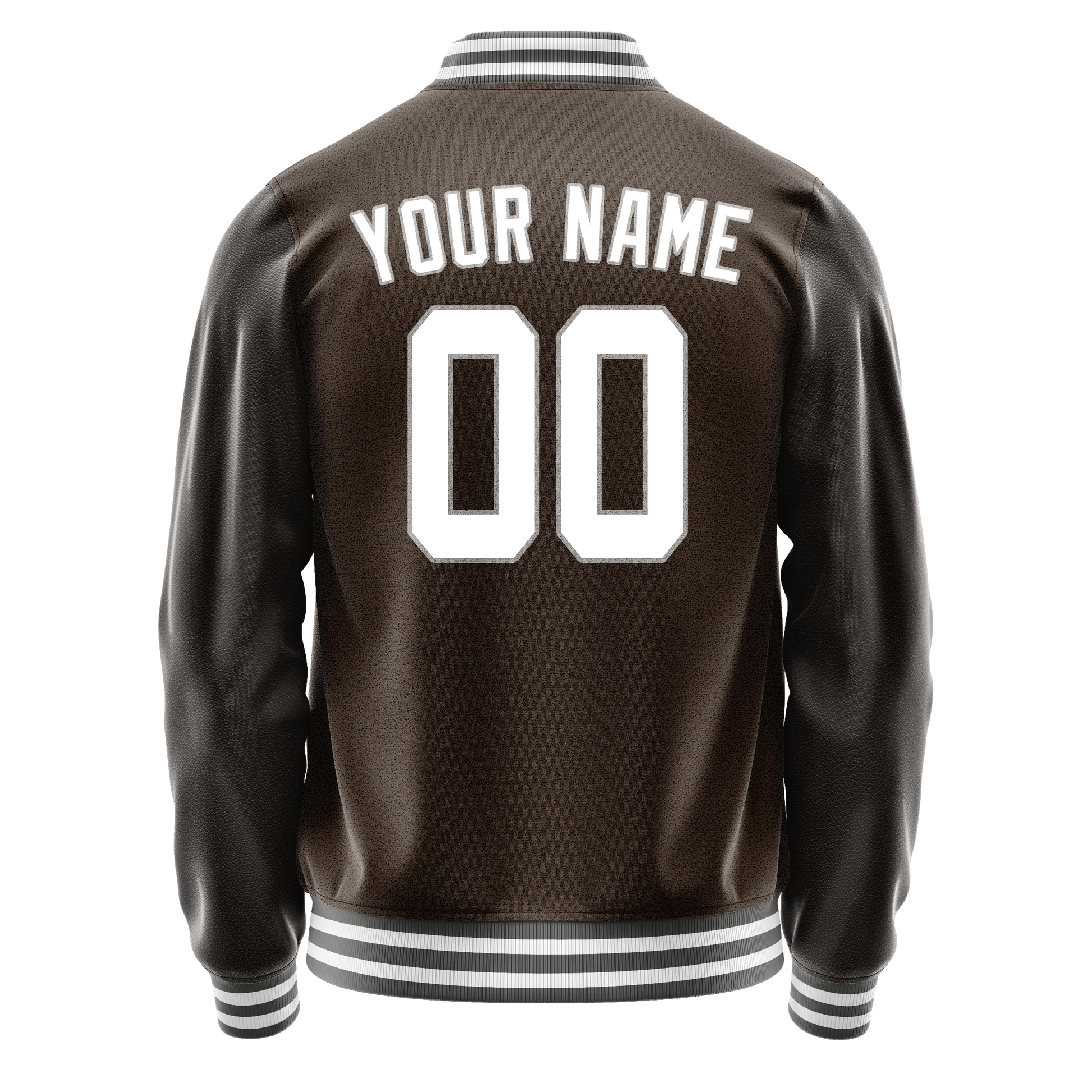Custom Brown White Solid Color Varsity Letterman Jacket