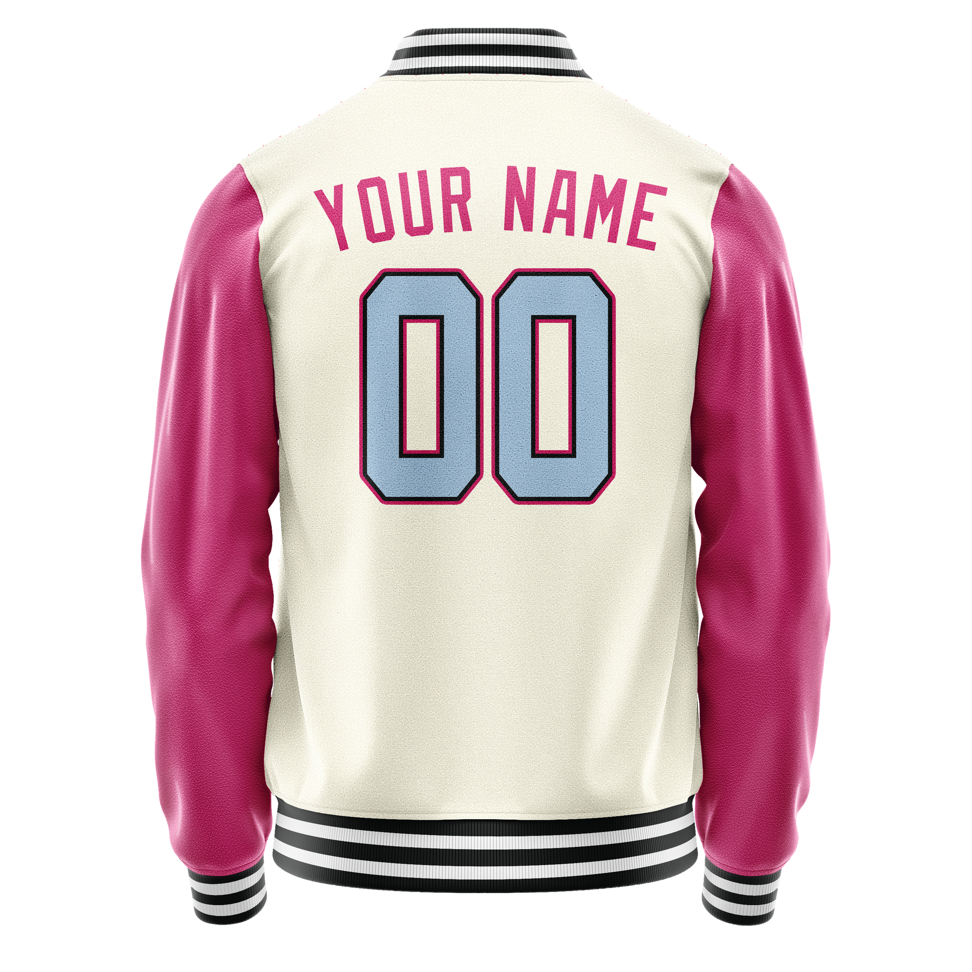 Custom Cream Pink Solid Color Varsity Letterman Jacket