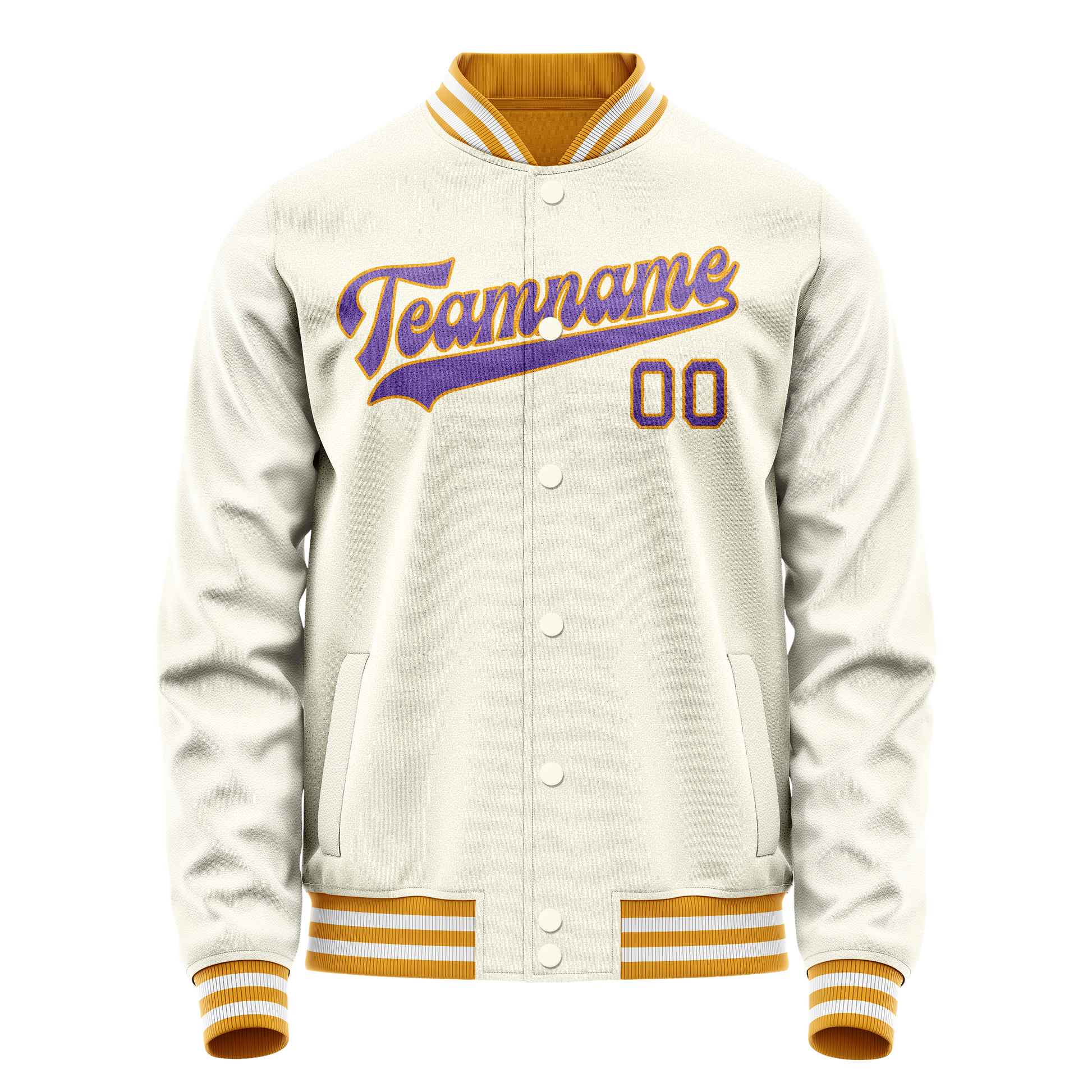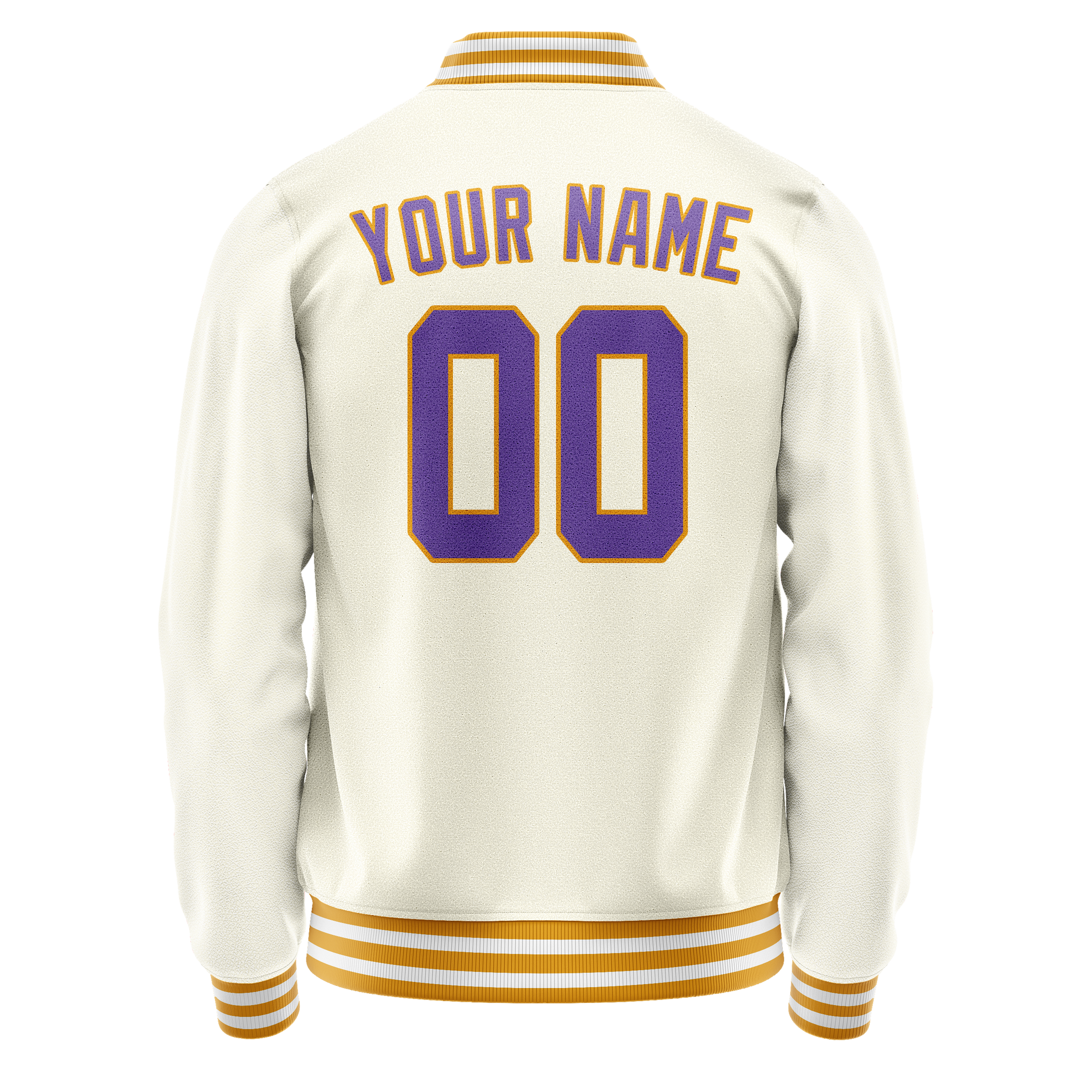 Custom Cream Purple Solid Color Varsity Letterman Jacket