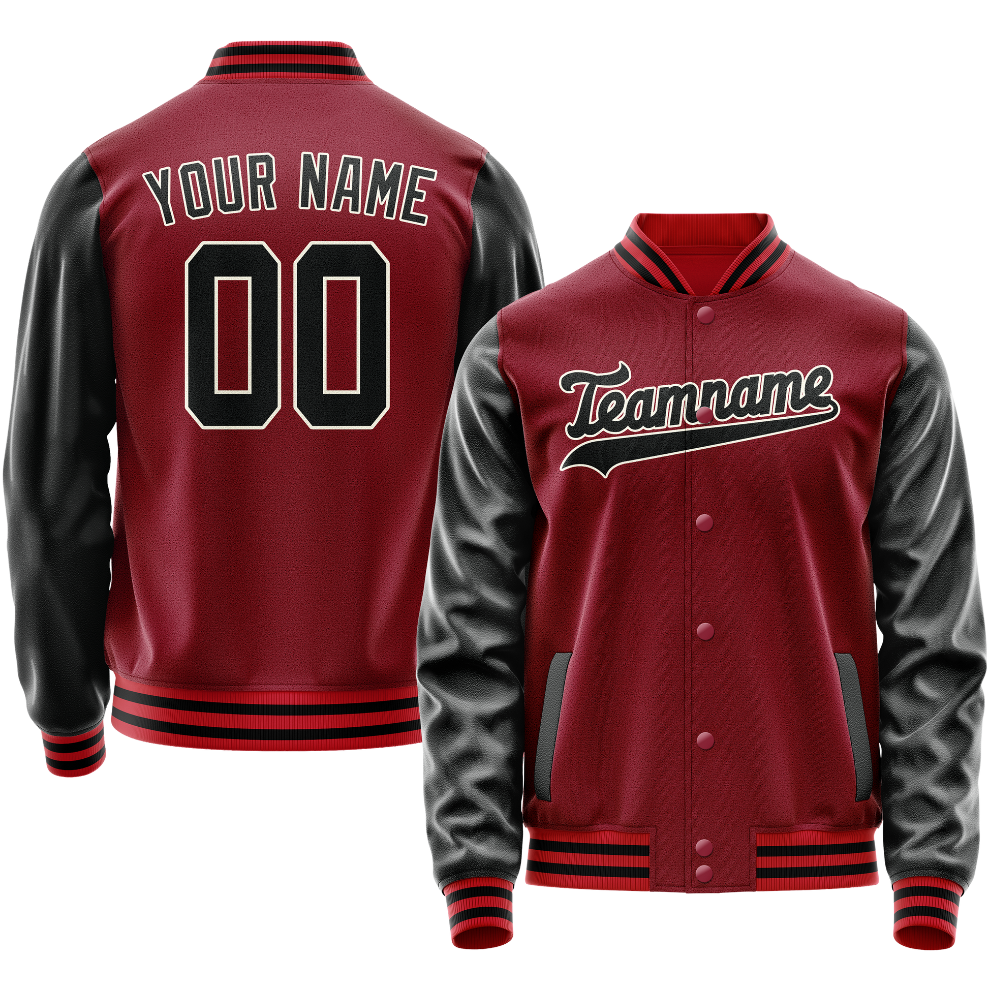 Custom Crimson Black Solid Color Varsity Letterman Jacket
