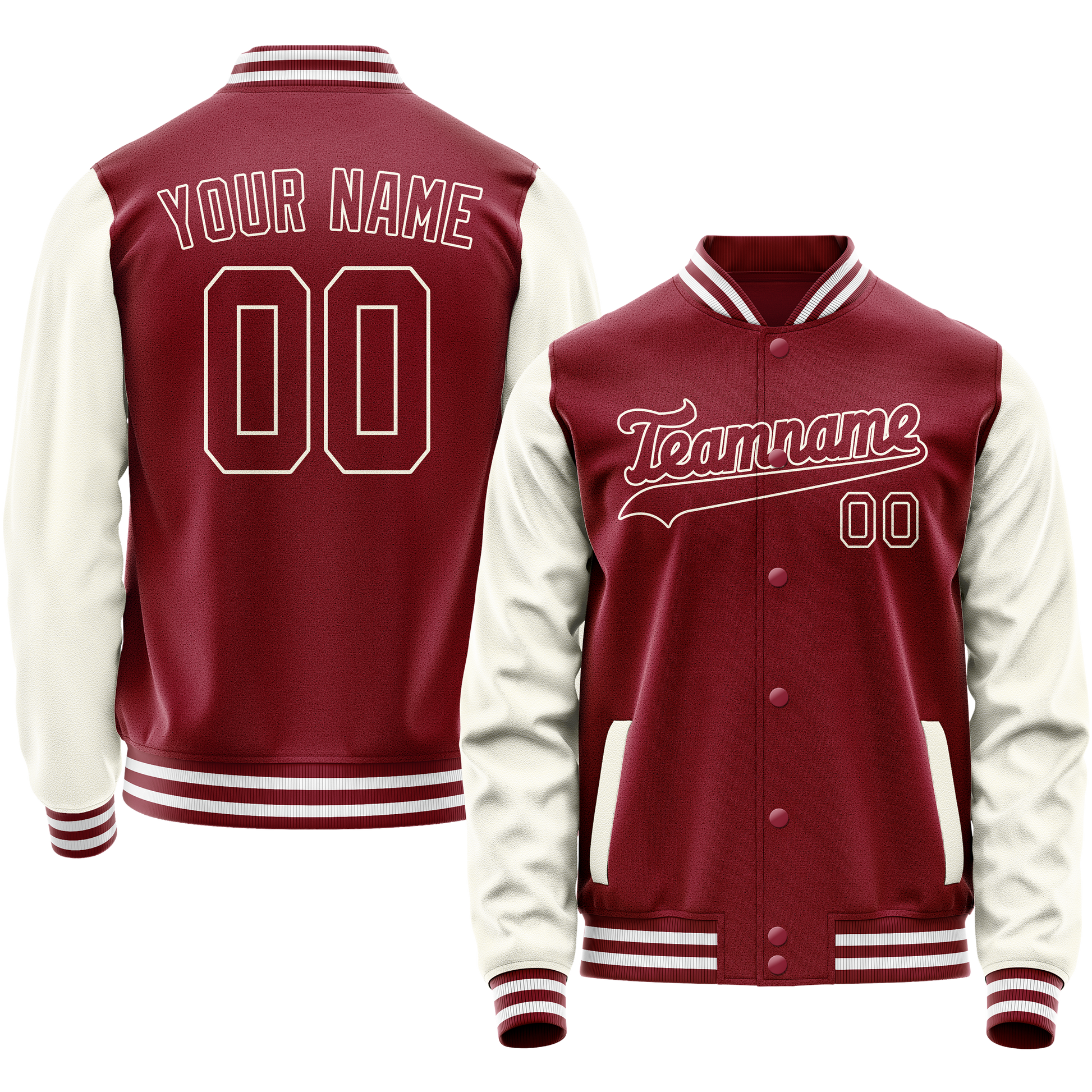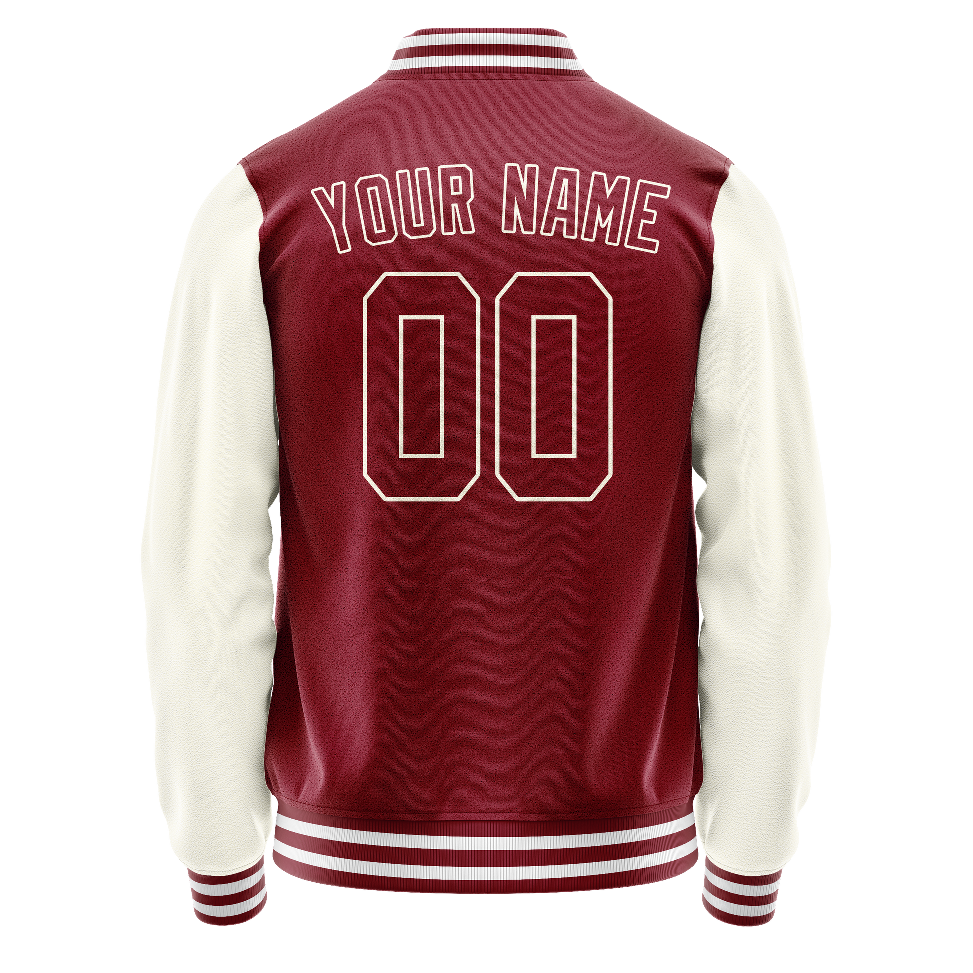 Custom Crimson Cream Solid Color Varsity Letterman Jacket