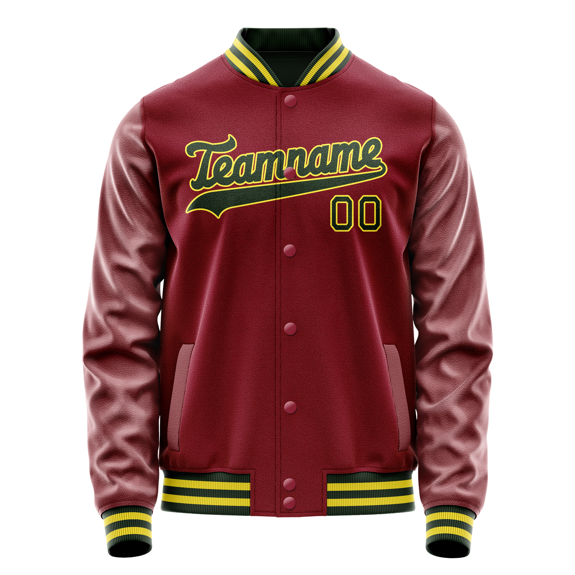 Custom Crimson Kelly-Green Solid Color Varsity Letterman Jacket