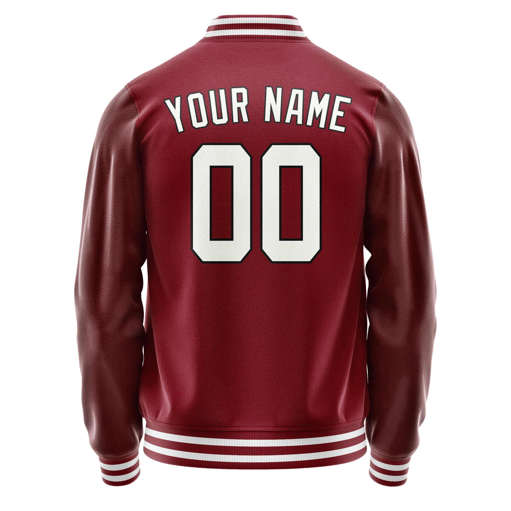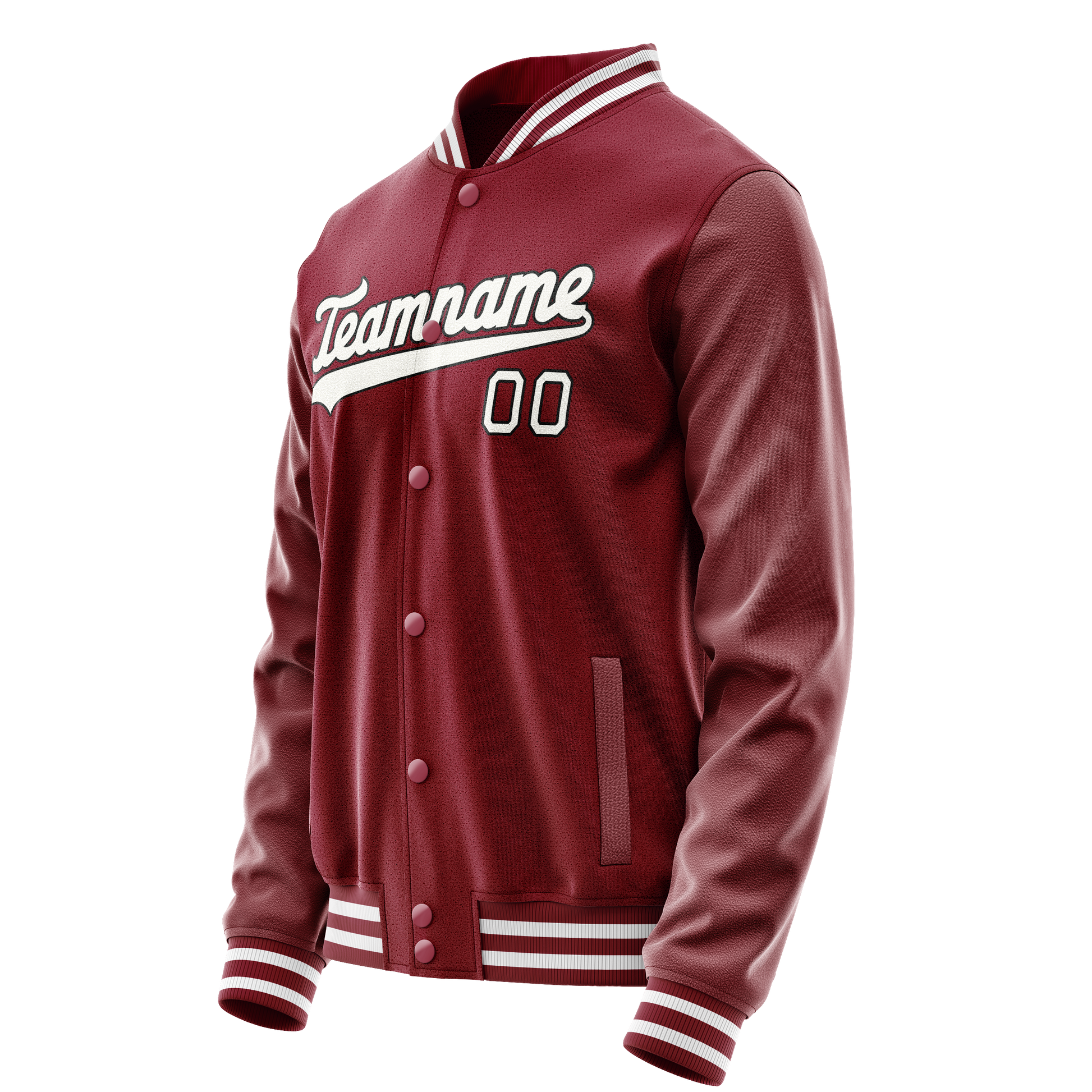 Custom Crimson White Solid Color Varsity Letterman Jacket