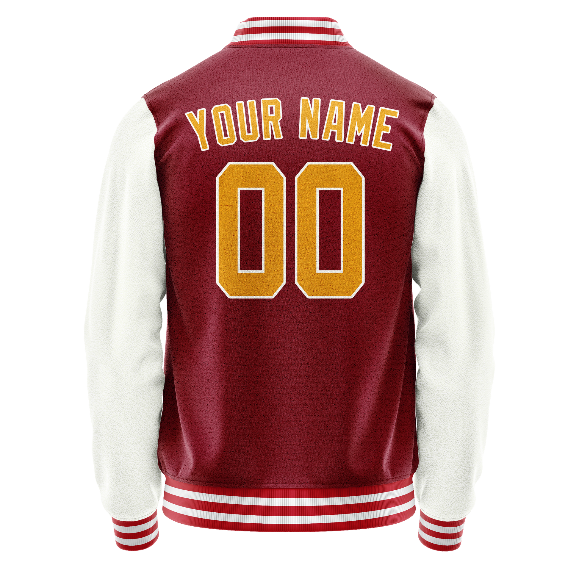 Custom Crimson White Solid Color Varsity Letterman Jacket