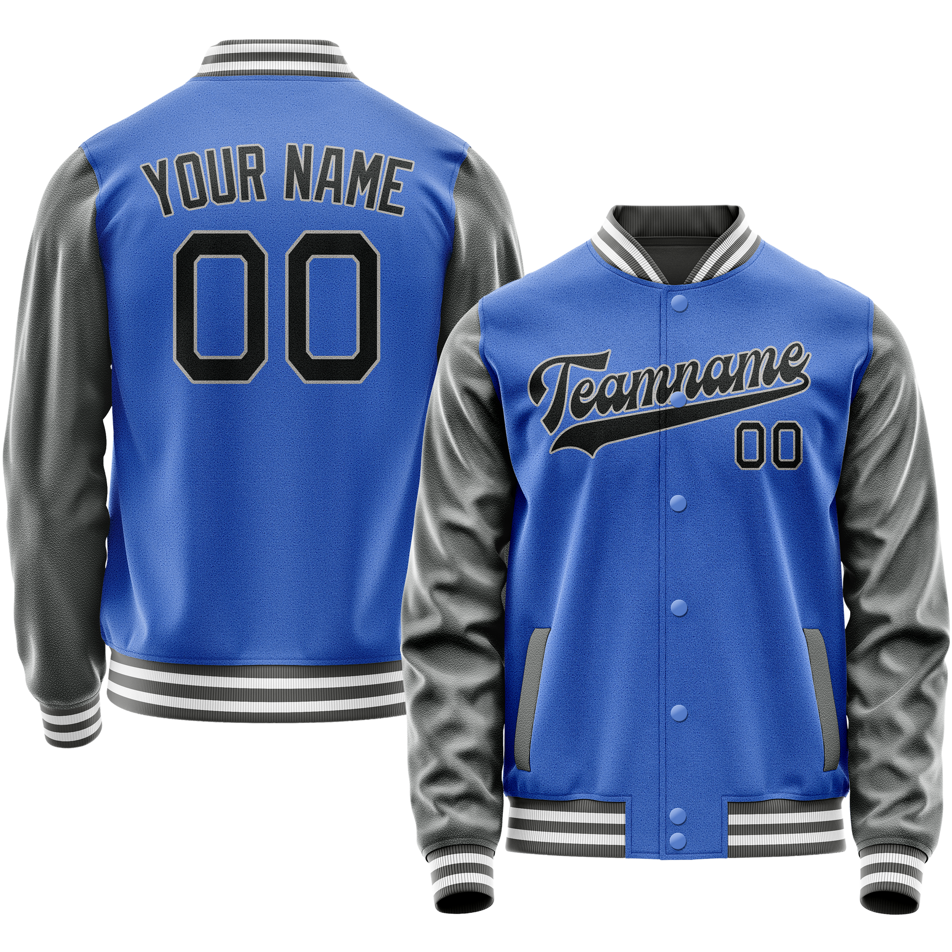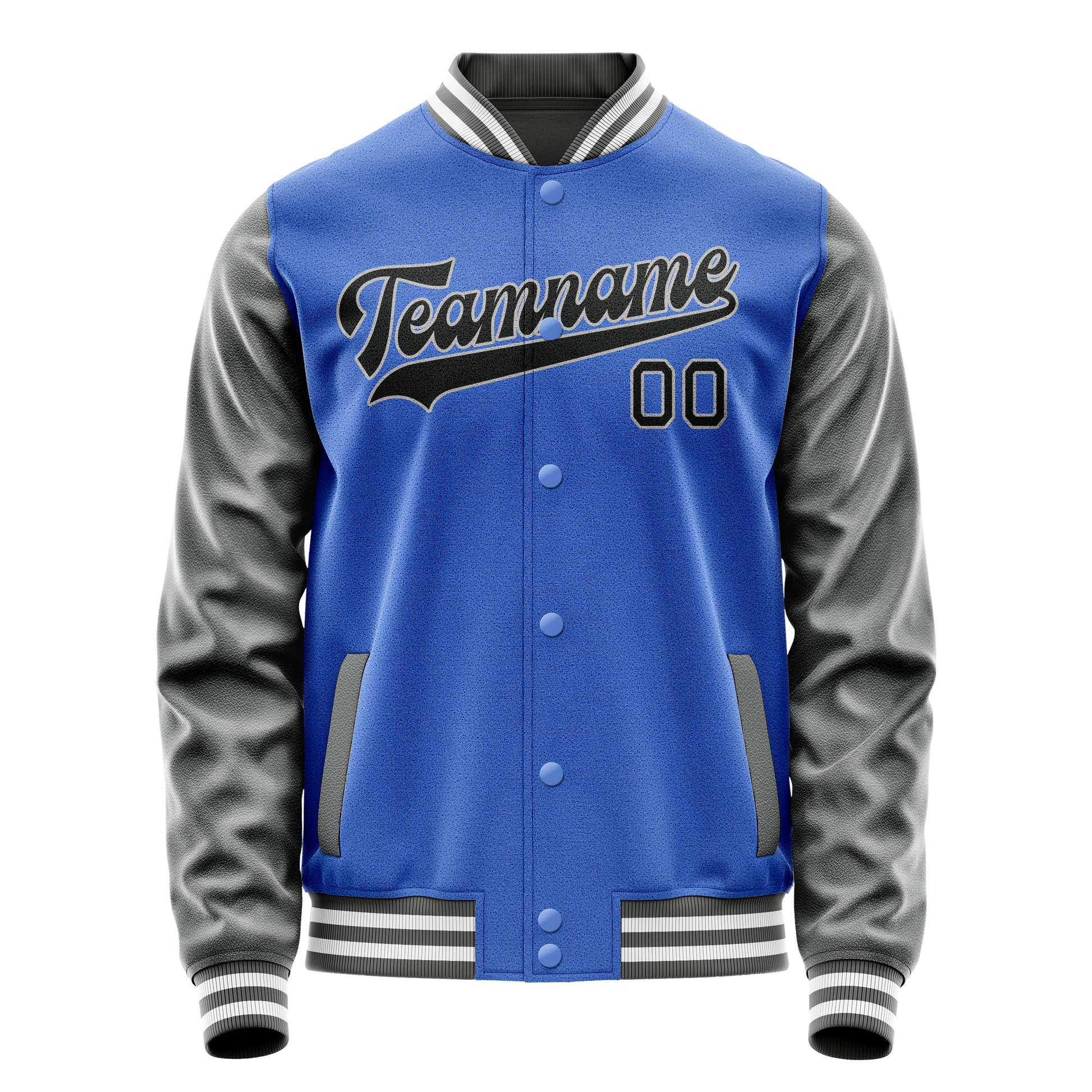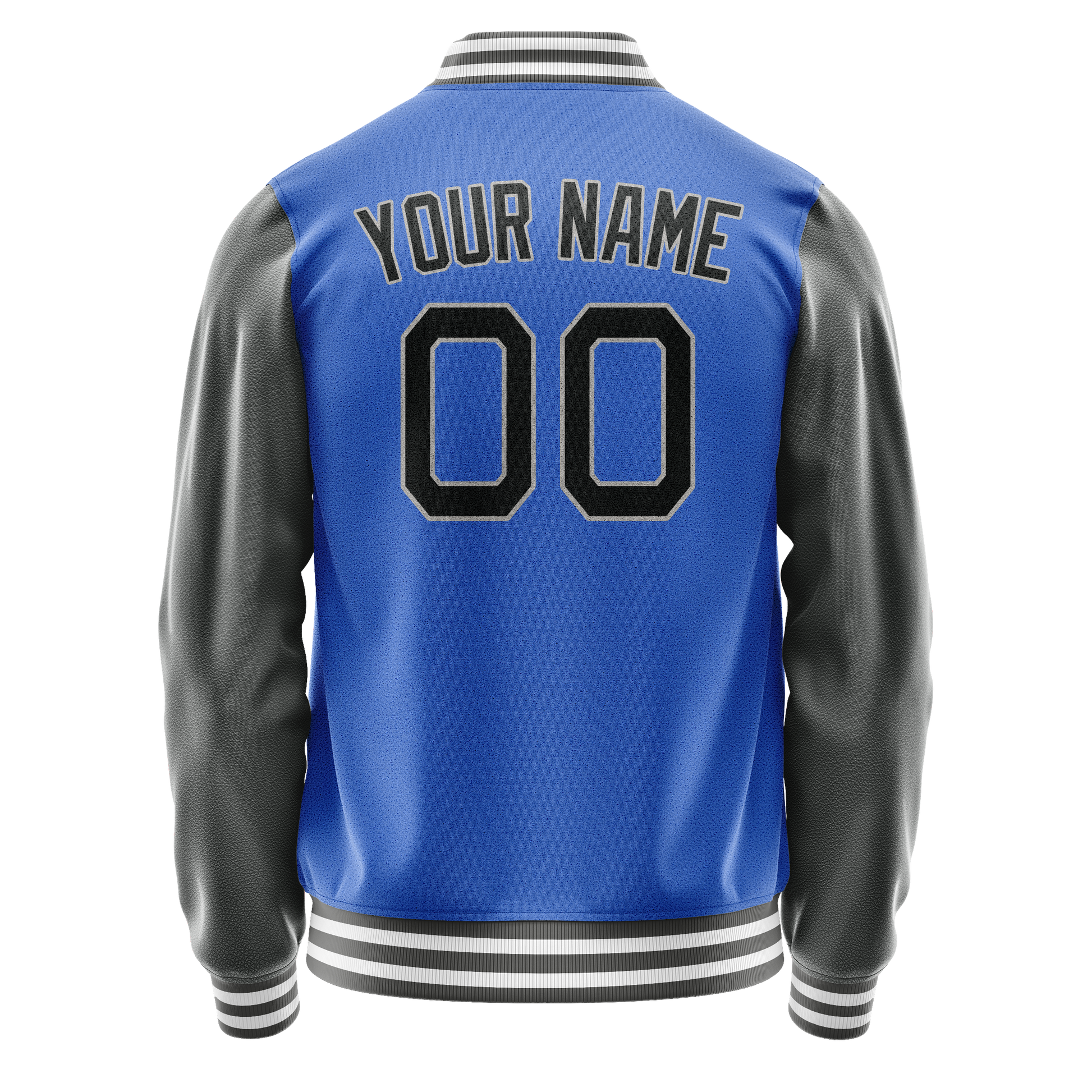 Custom Electric-Blue Gray Solid Color Varsity Letterman Jacket