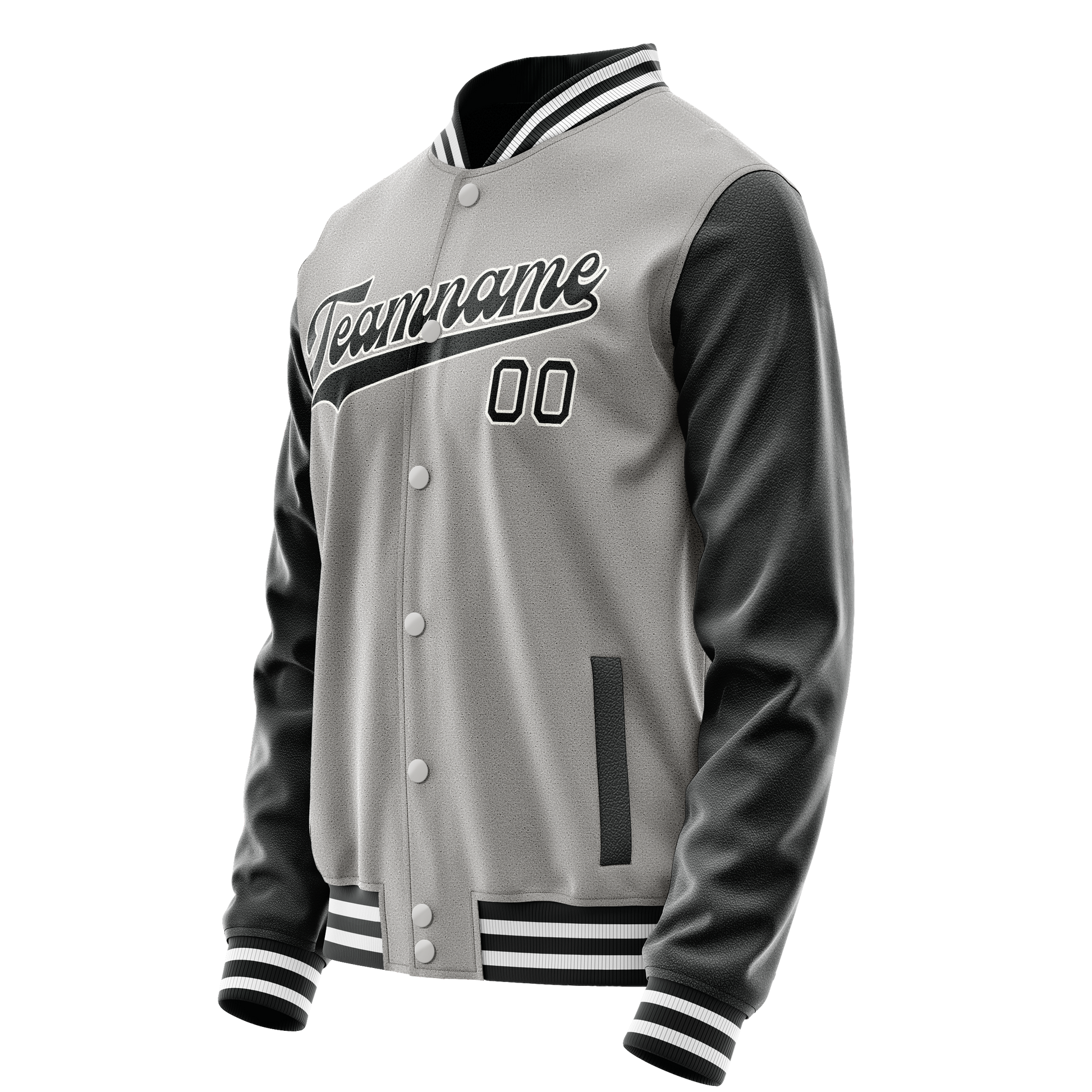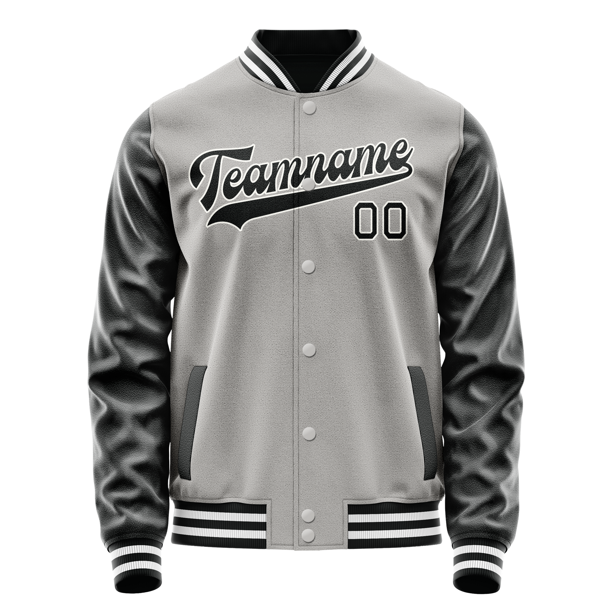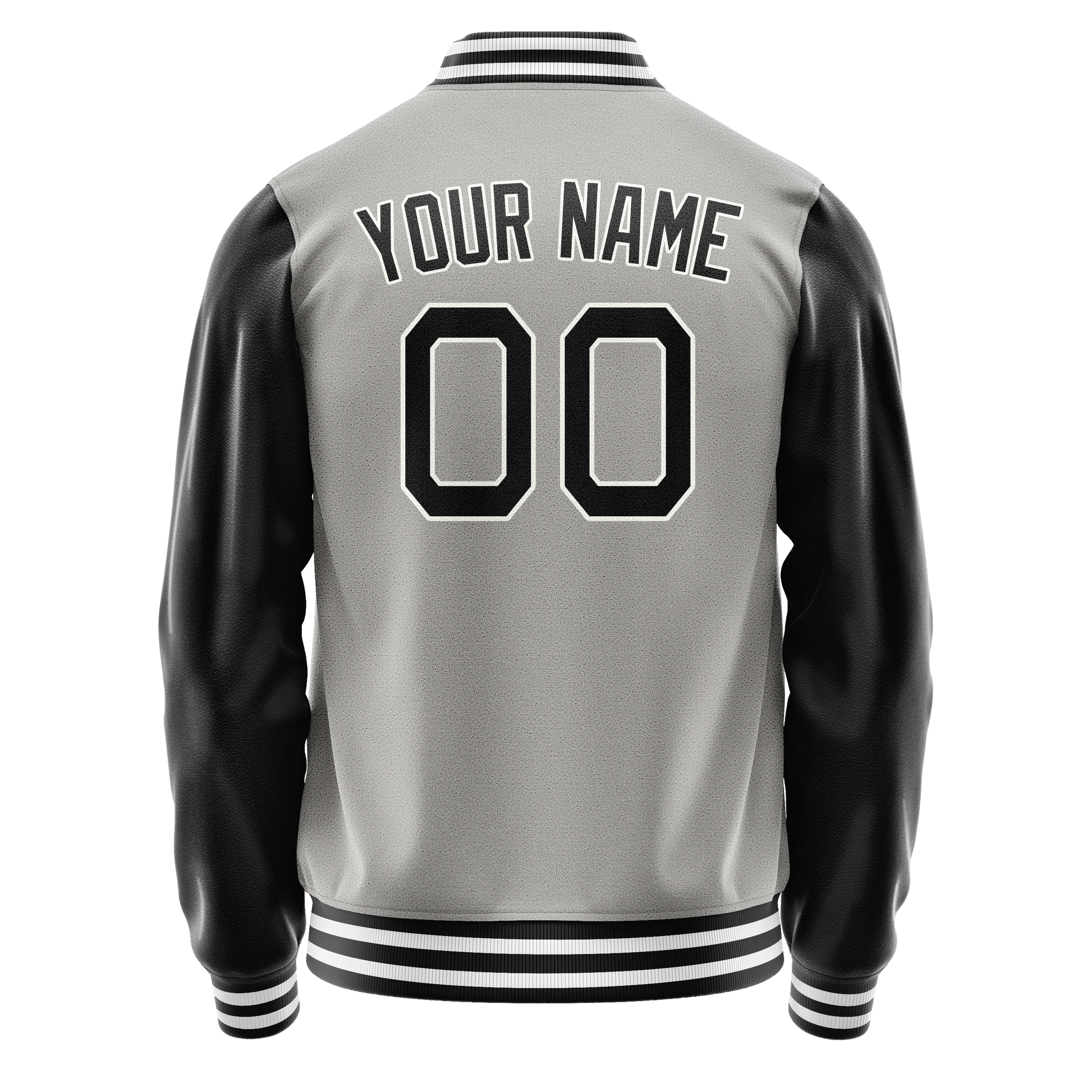 Custom Gray Black Solid Color Varsity Letterman Jacket