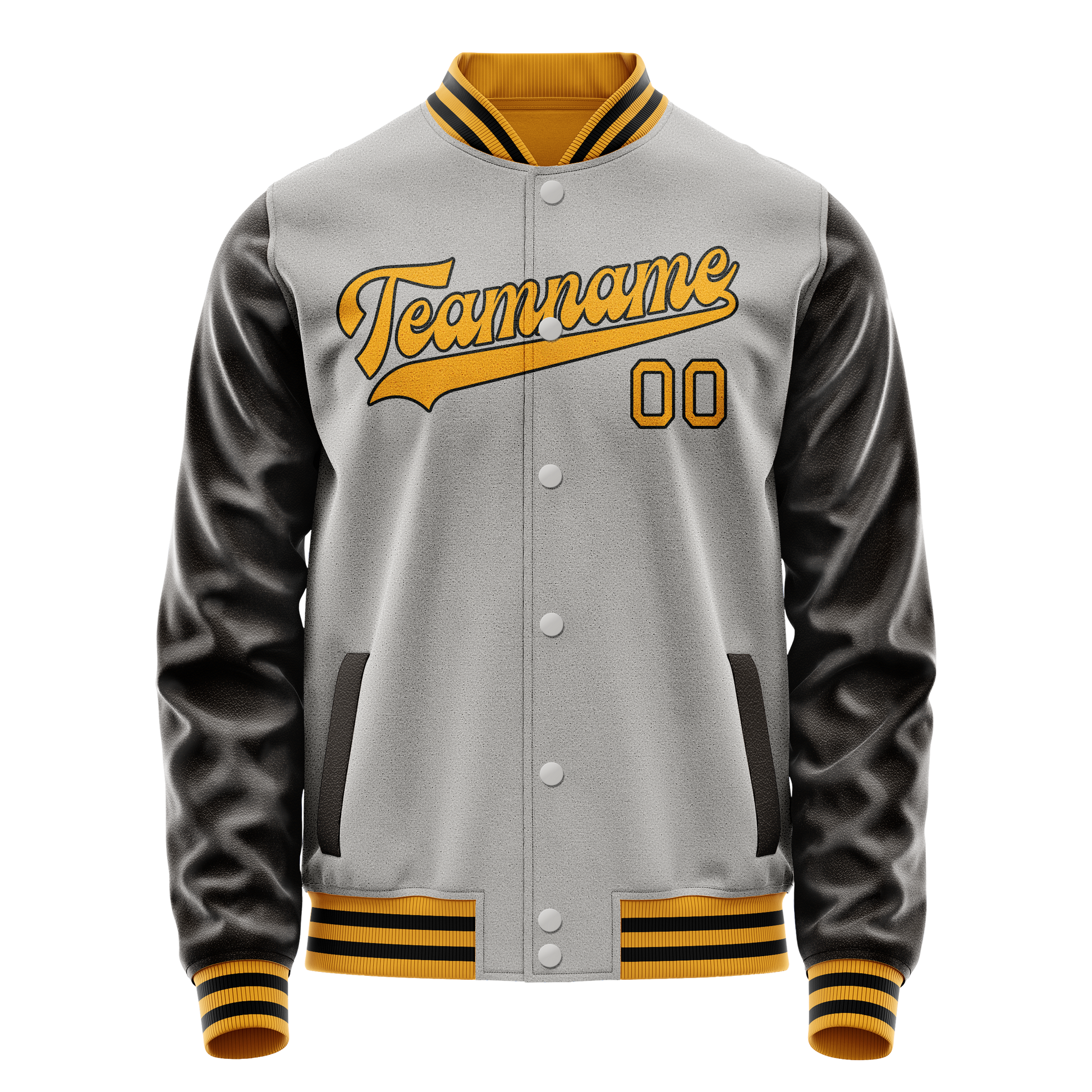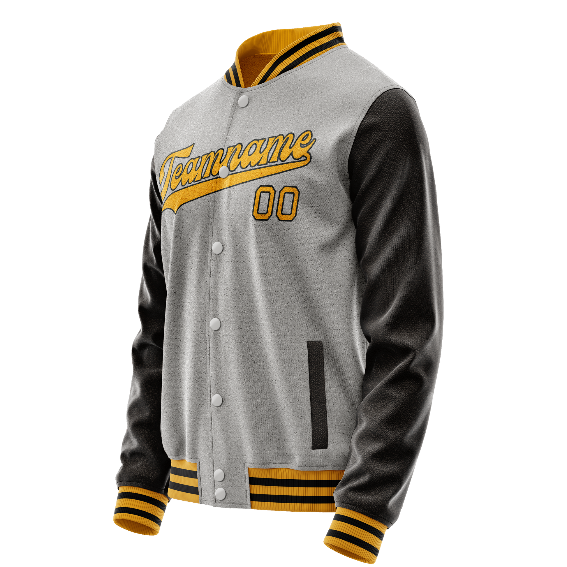Custom Gray Brown Solid Color Varsity Letterman Jacket