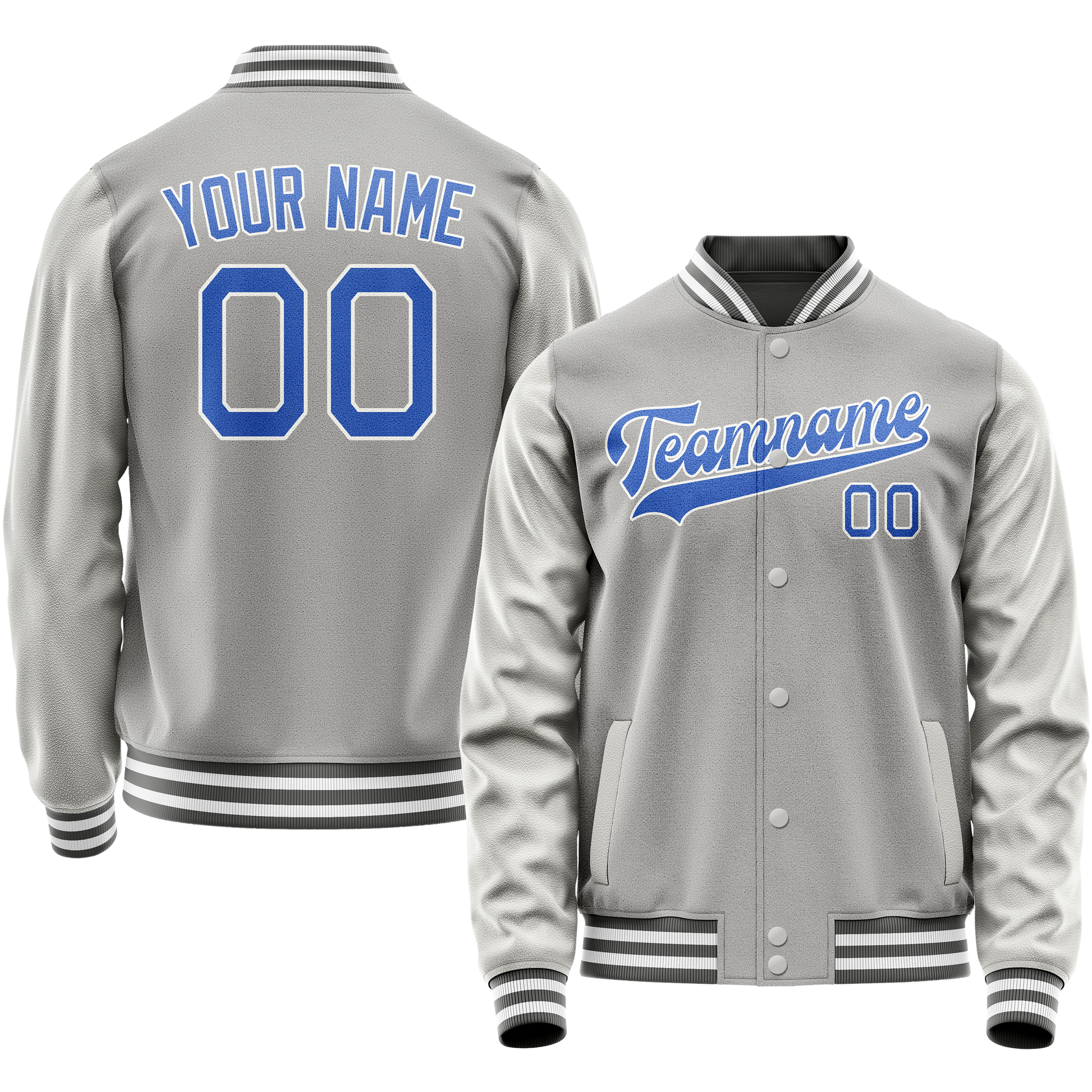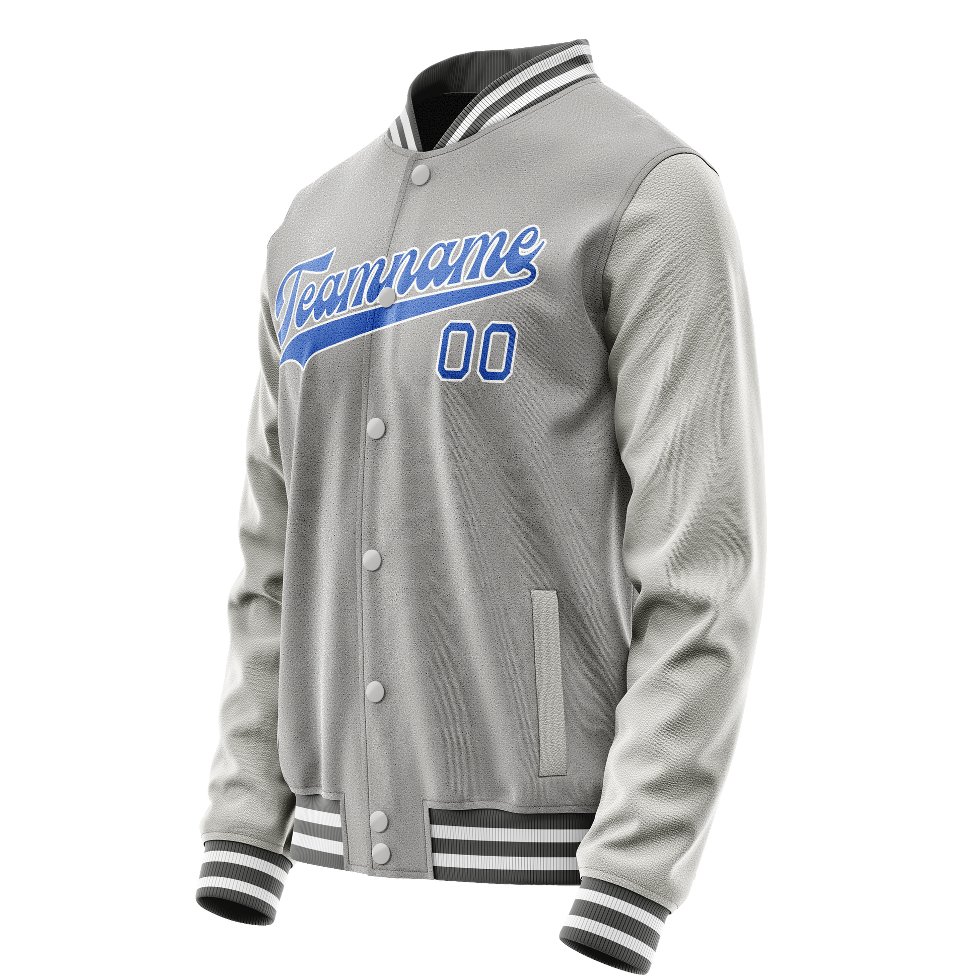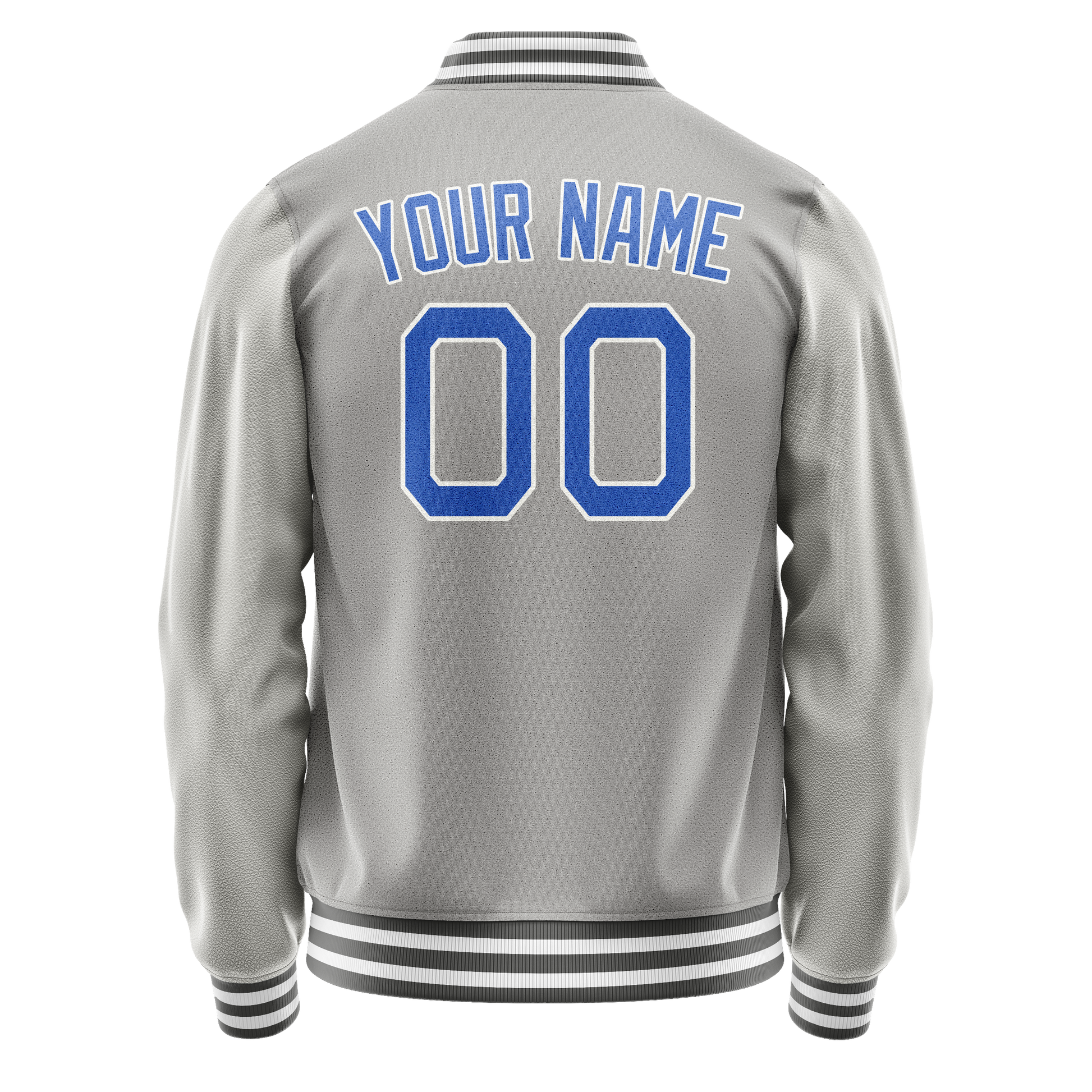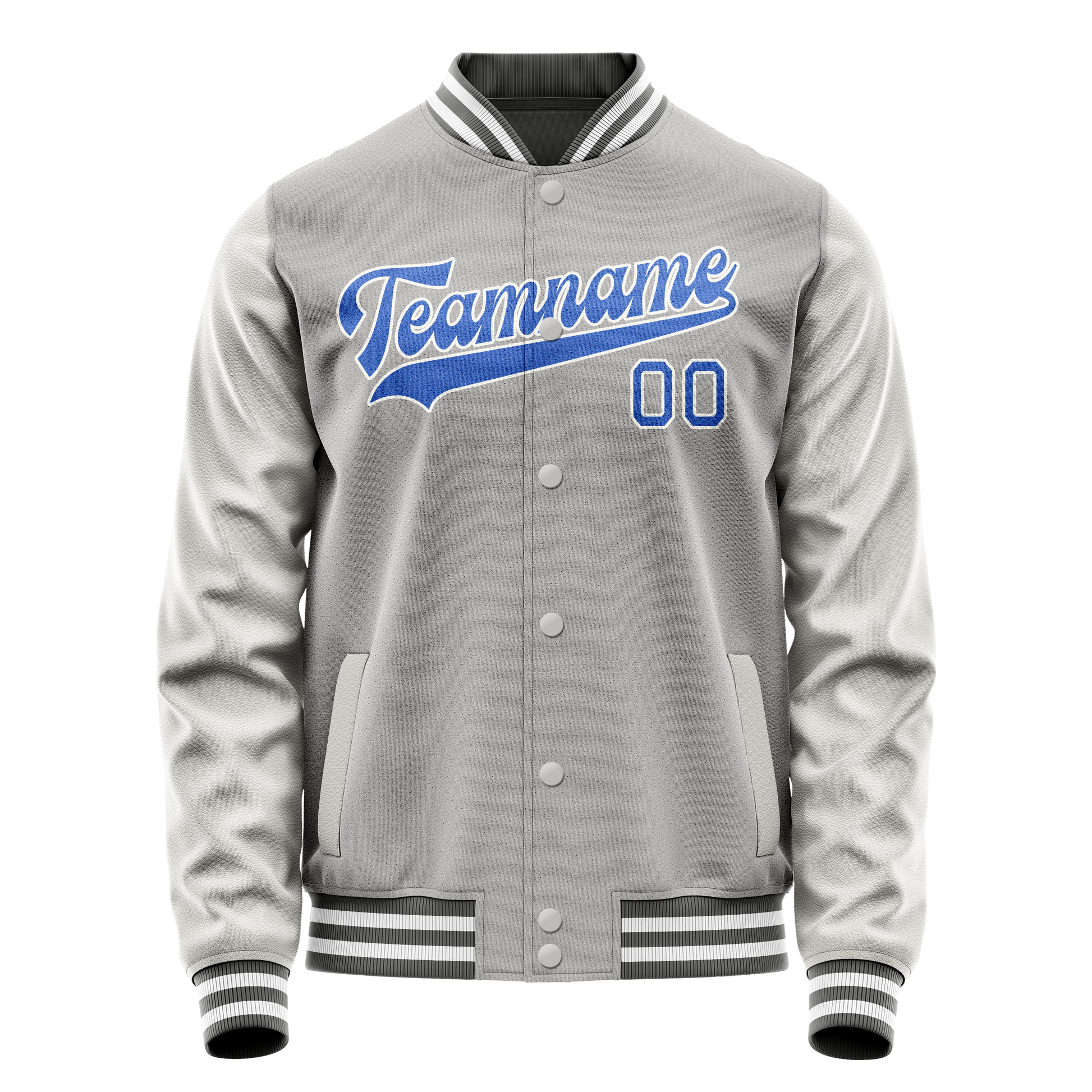 Custom Gray Light-Blue Solid Color Varsity Letterman Jacket