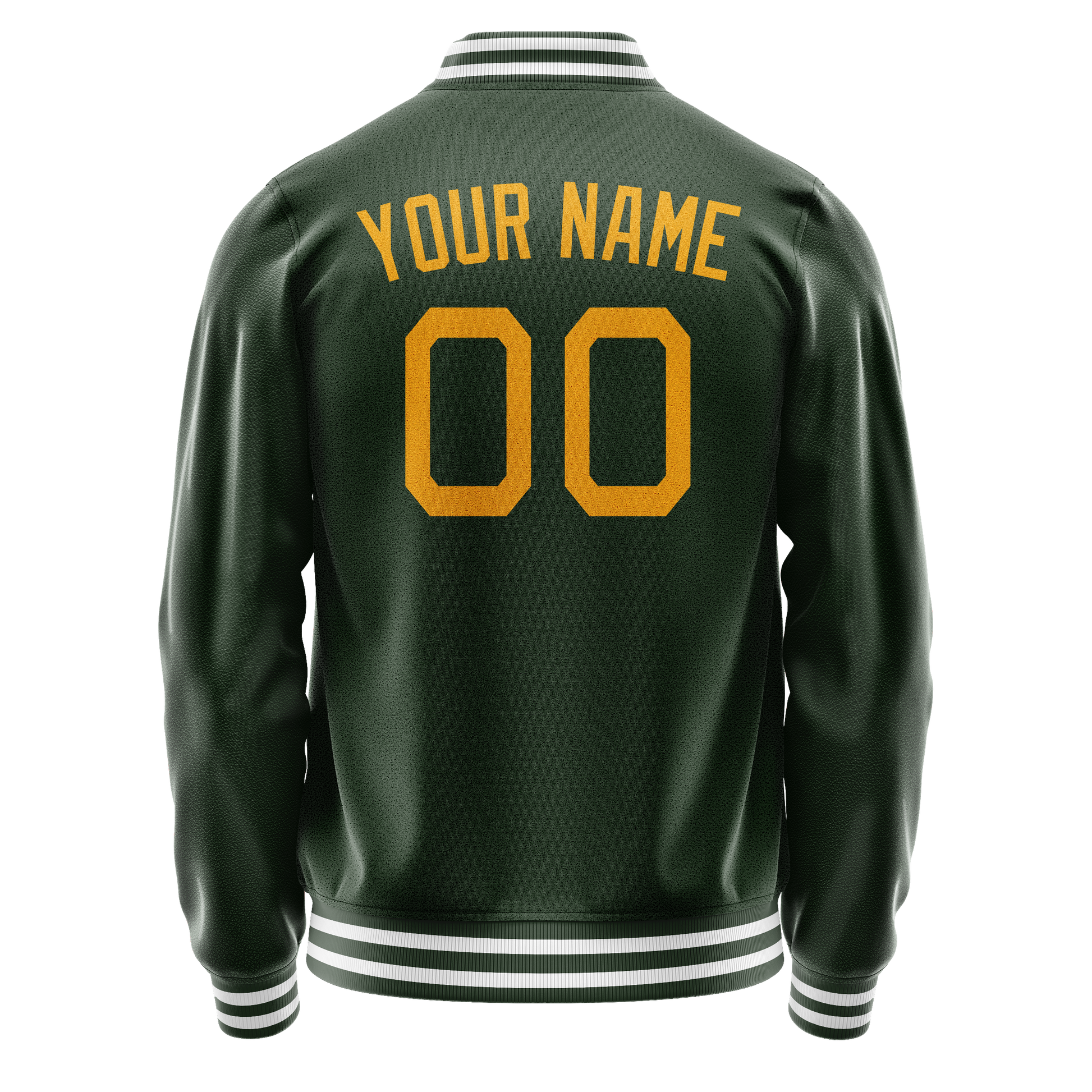Custom Green Gold Solid Color Varsity Letterman Jacket