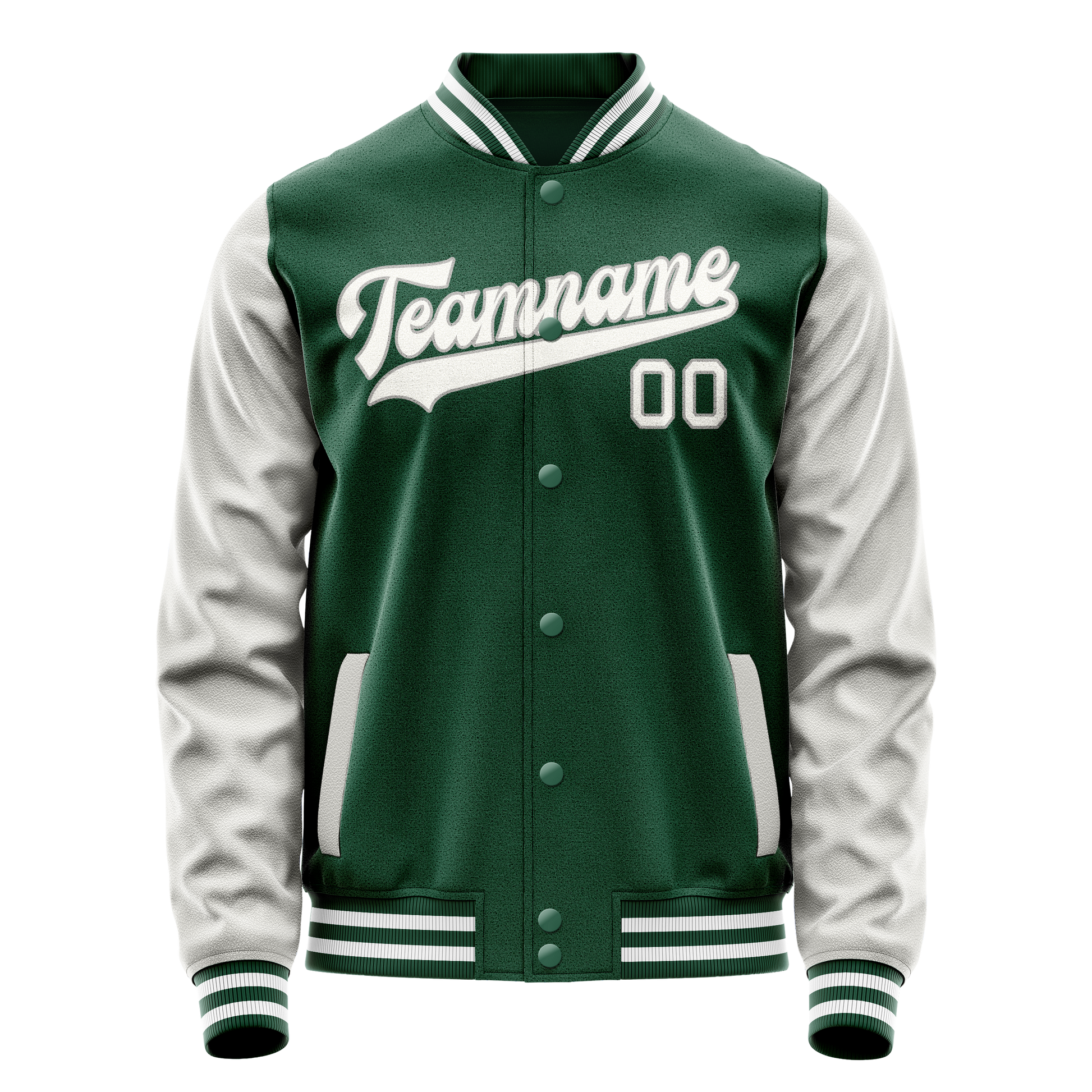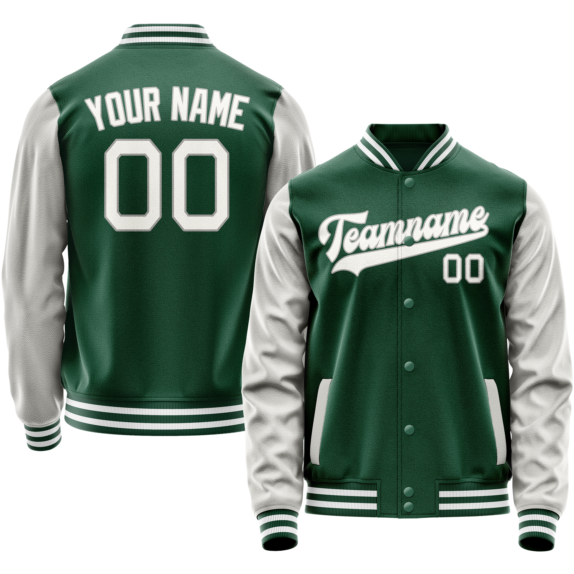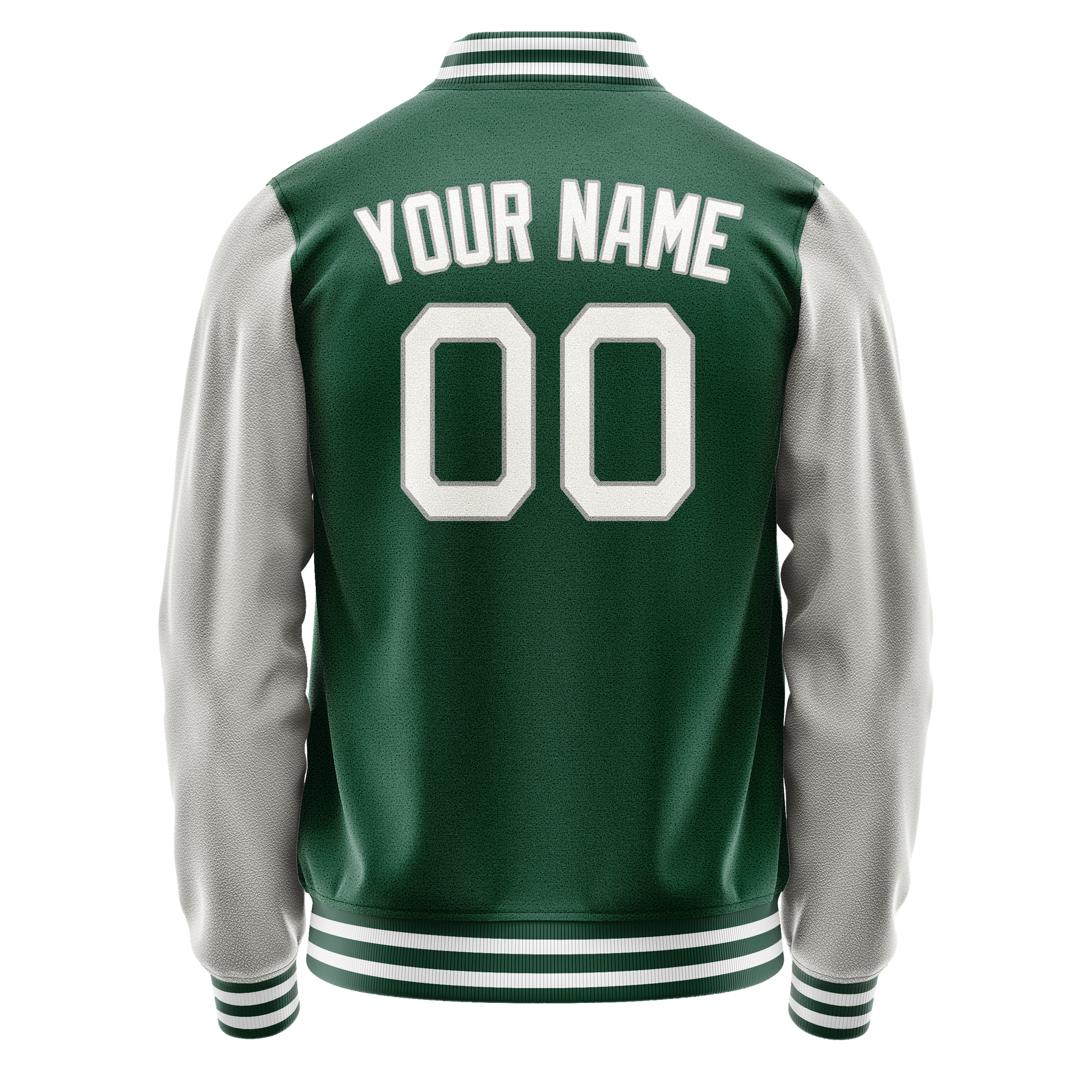 Custom Kelly-Green Gray Solid Color Varsity Letterman Jacket