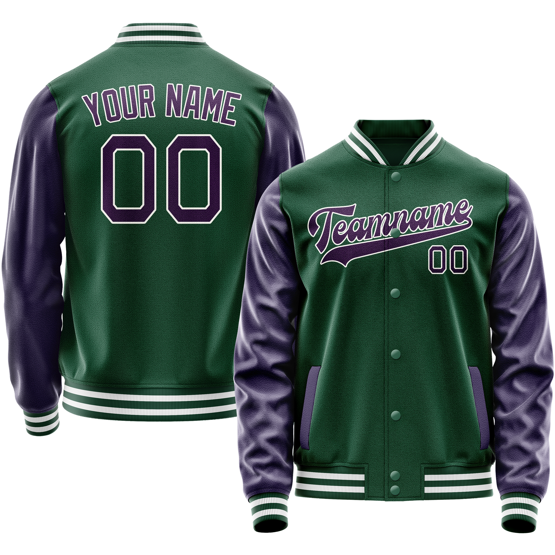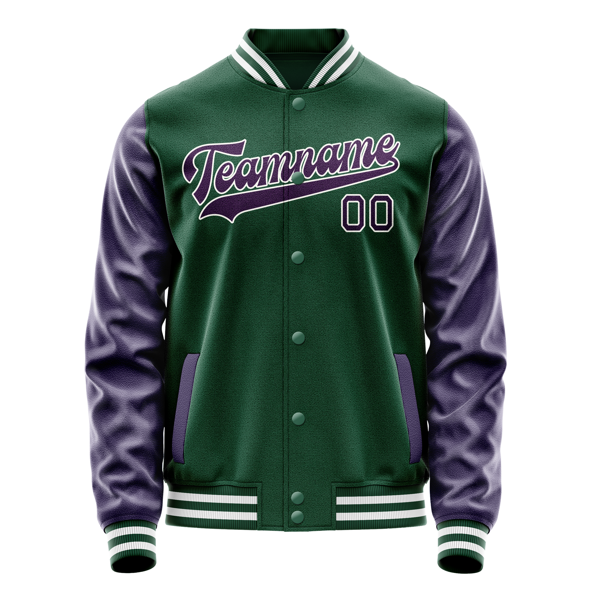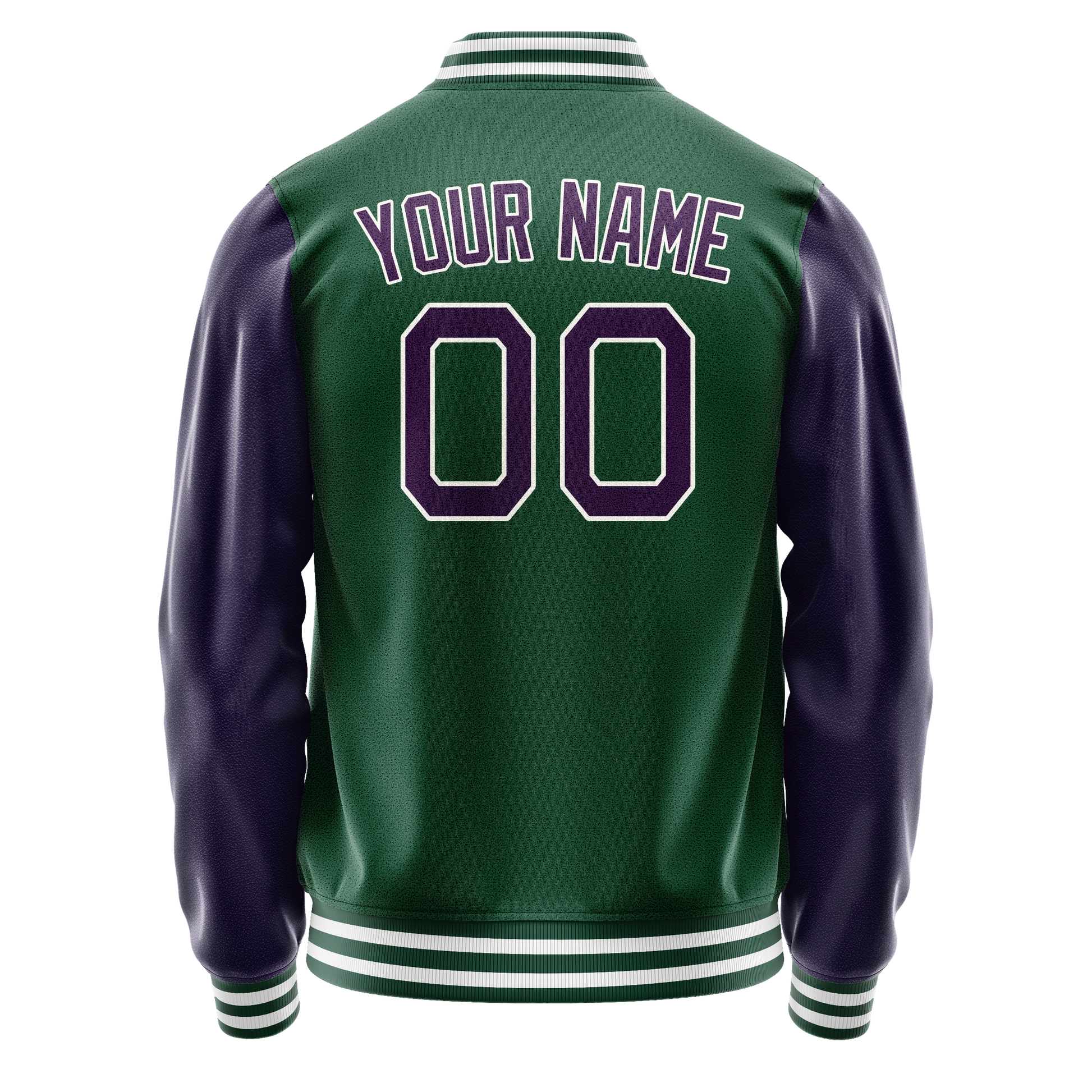 Custom Kelly-Green Purple Solid Color Varsity Letterman Jacket