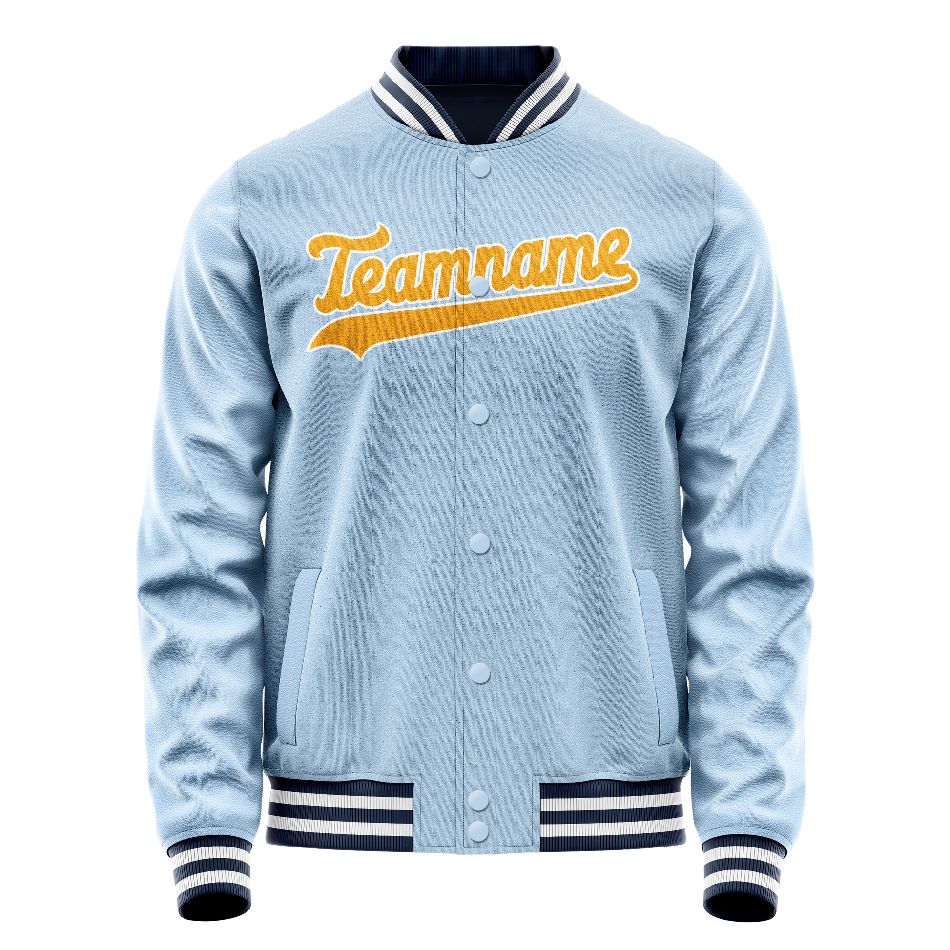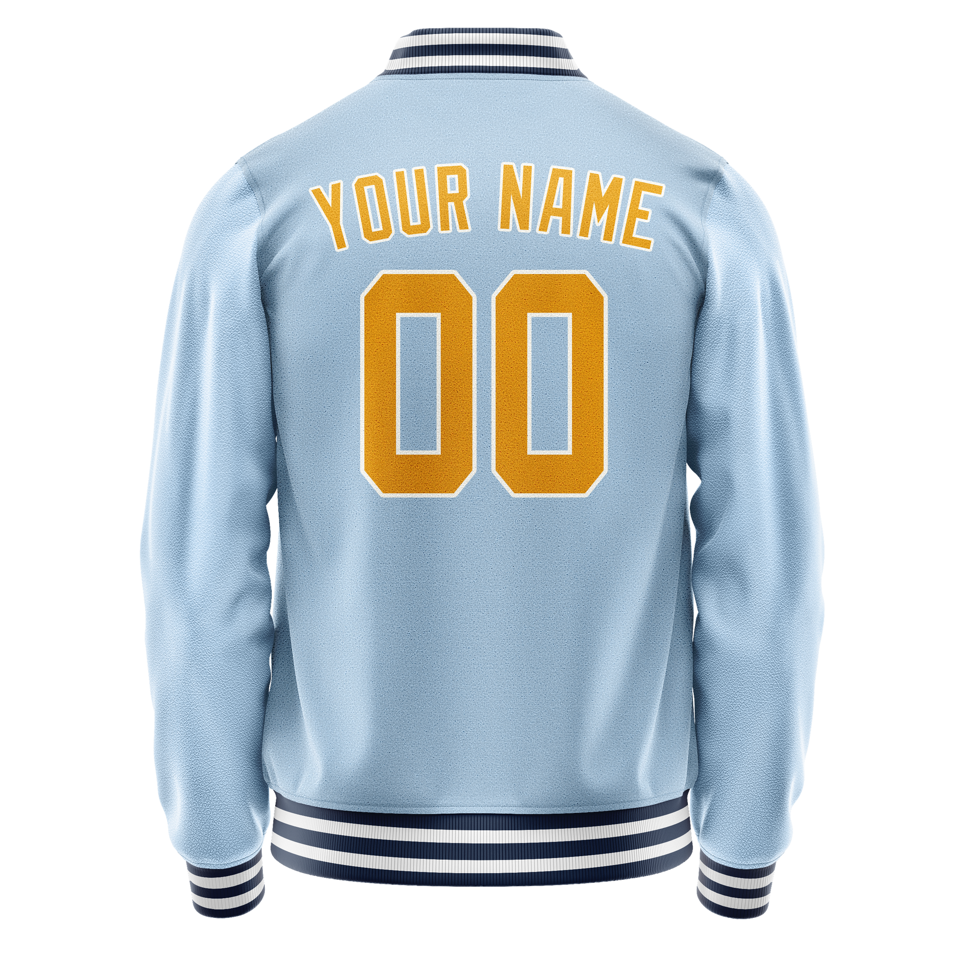 Custom Light-Blue Gold Solid Color Varsity Letterman Jacket