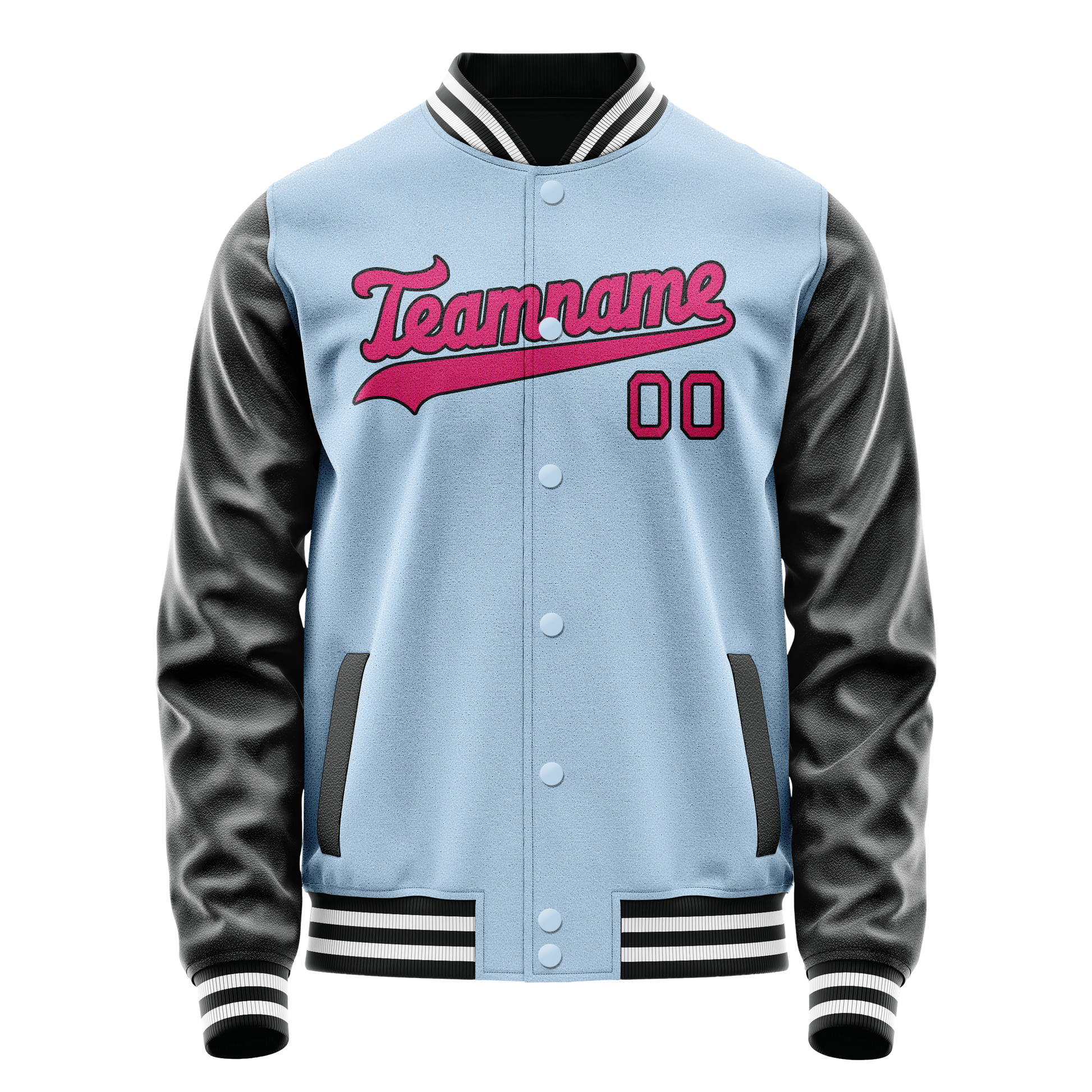 Custom Light-Blue Pink Solid Color Varsity Letterman Jacket