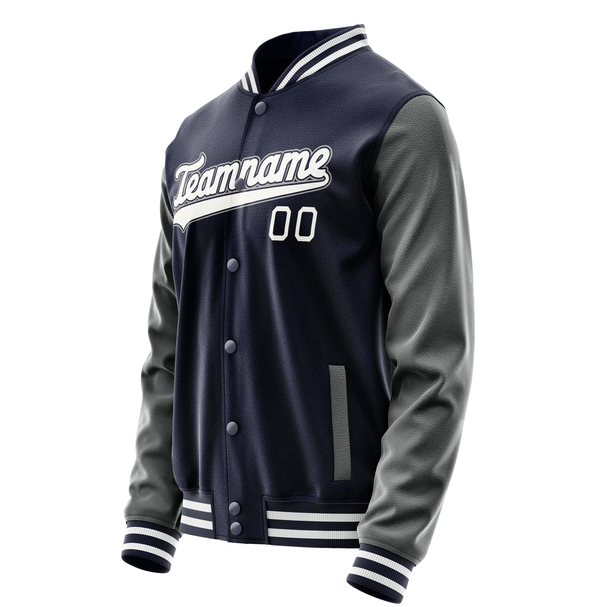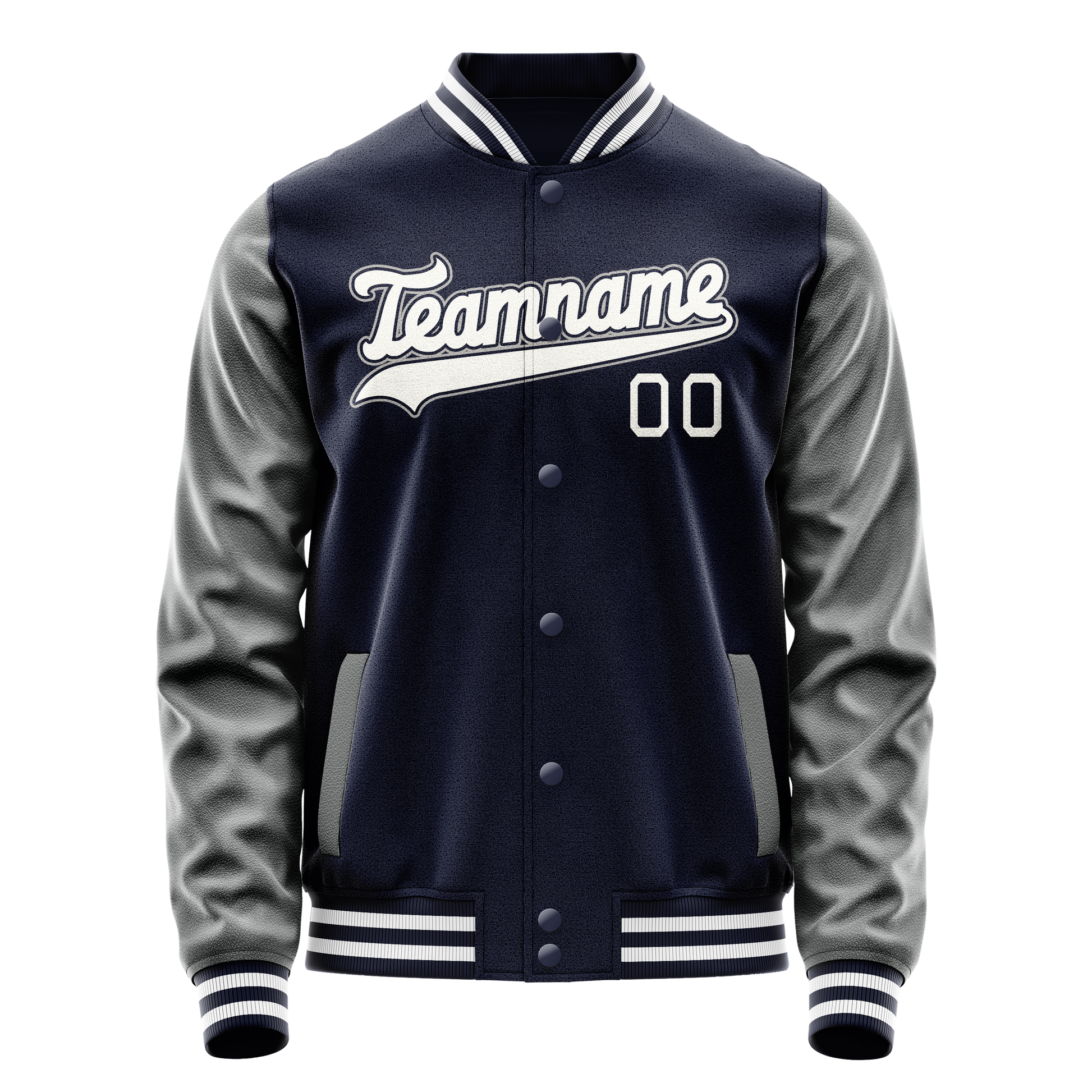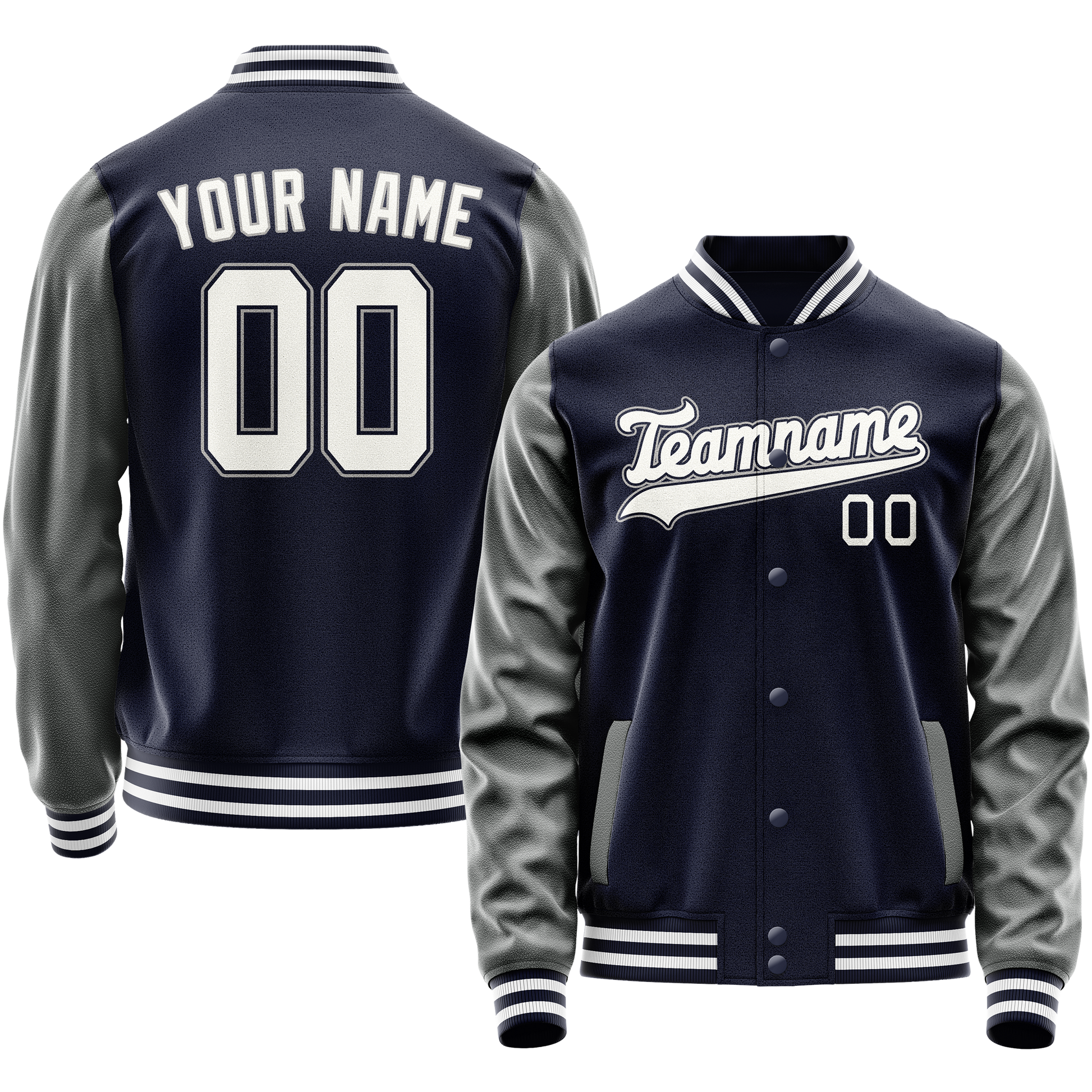 Custom Navy Gray Solid Color Varsity Letterman Jacket