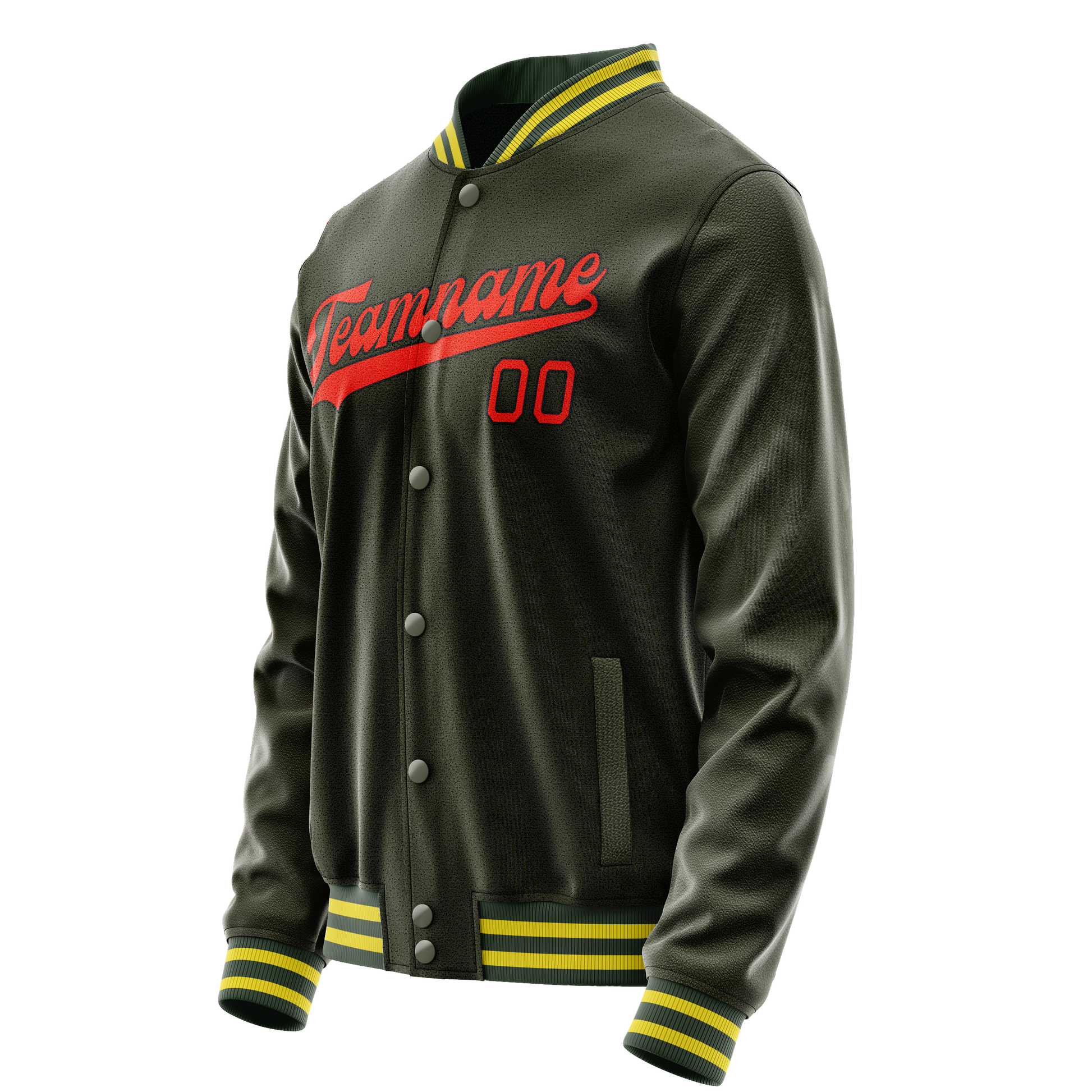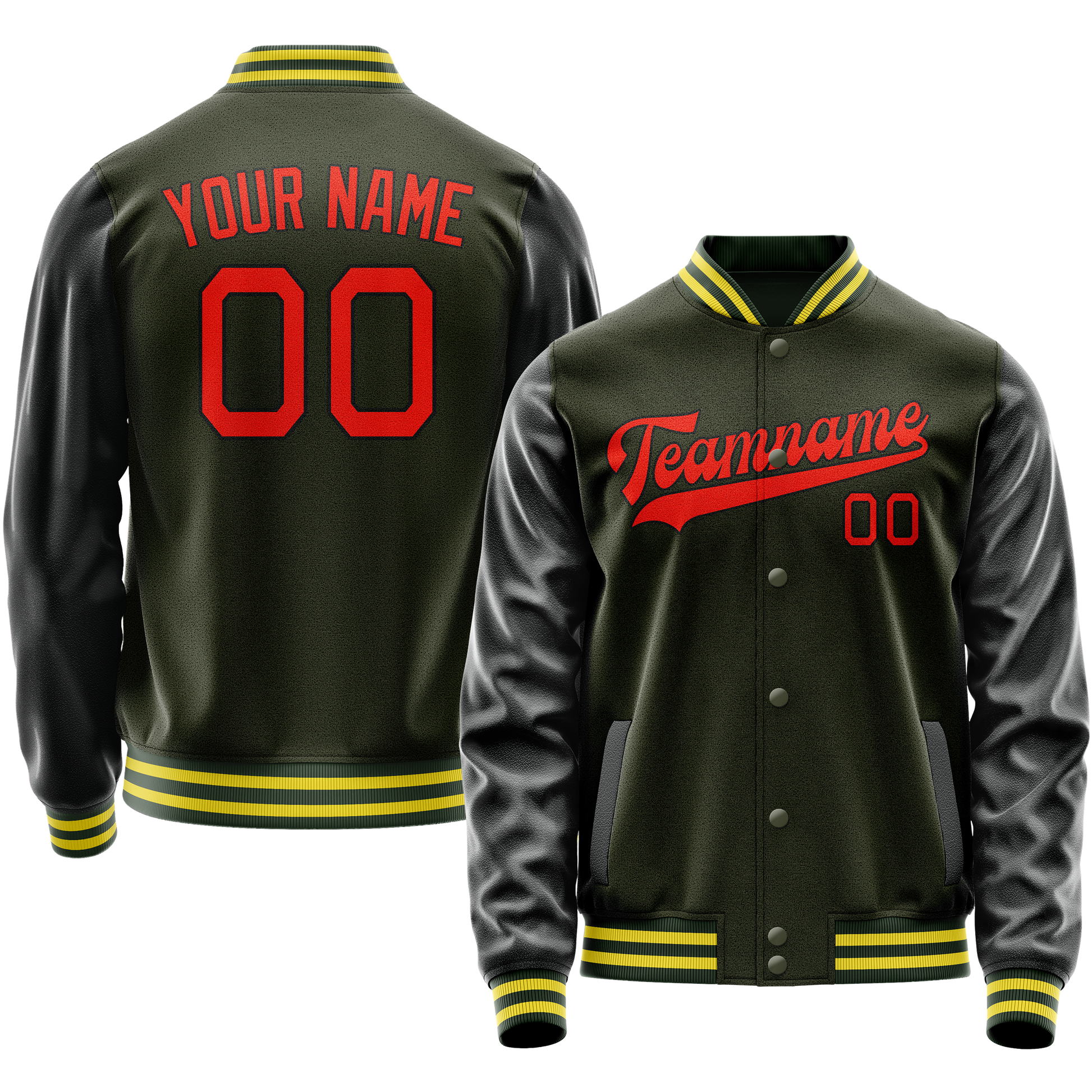 Custom Olive Orange Solid Color Varsity Letterman Jacket