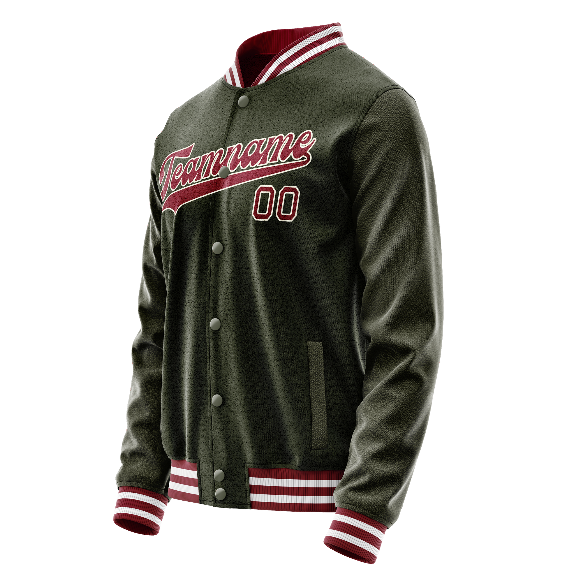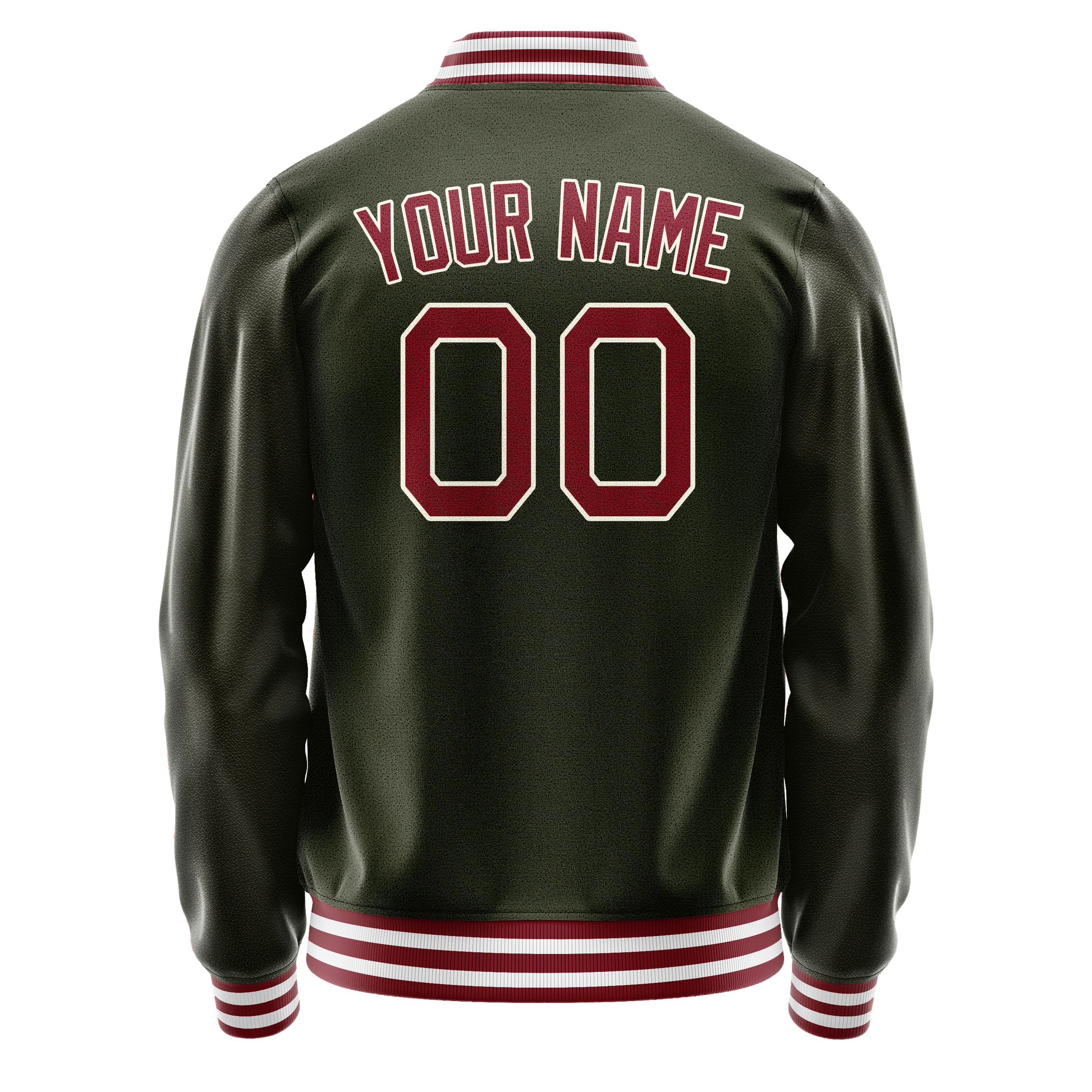 Custom Olive Red Solid Color Varsity Letterman Jacket