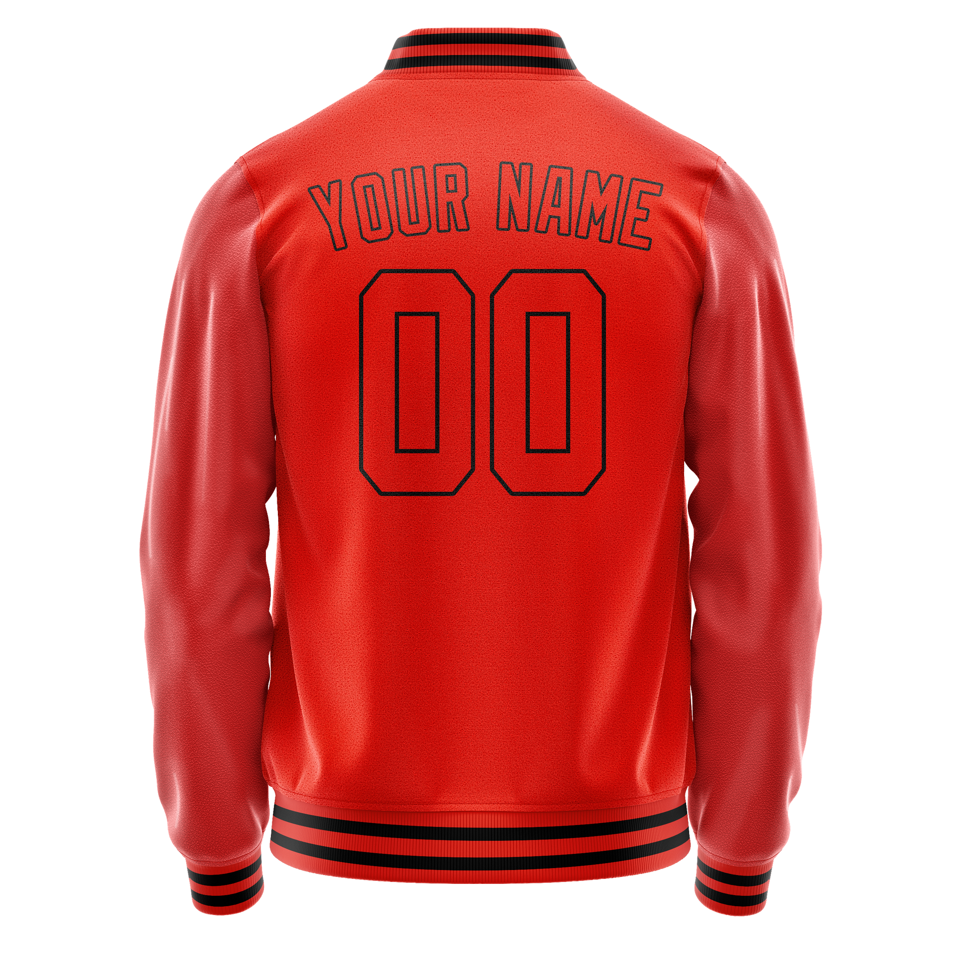 Custom Orange Black Solid Color Varsity Letterman Jacket
