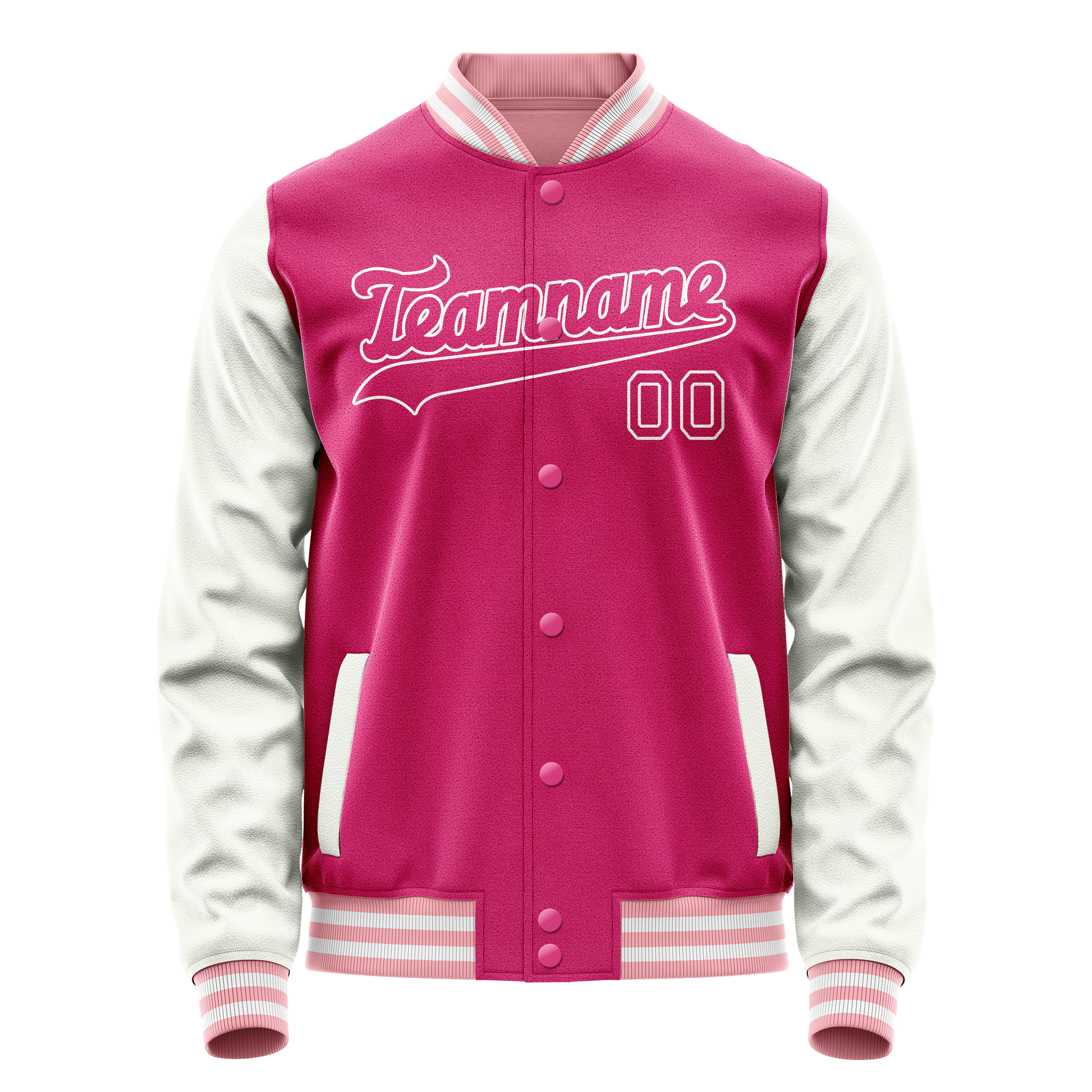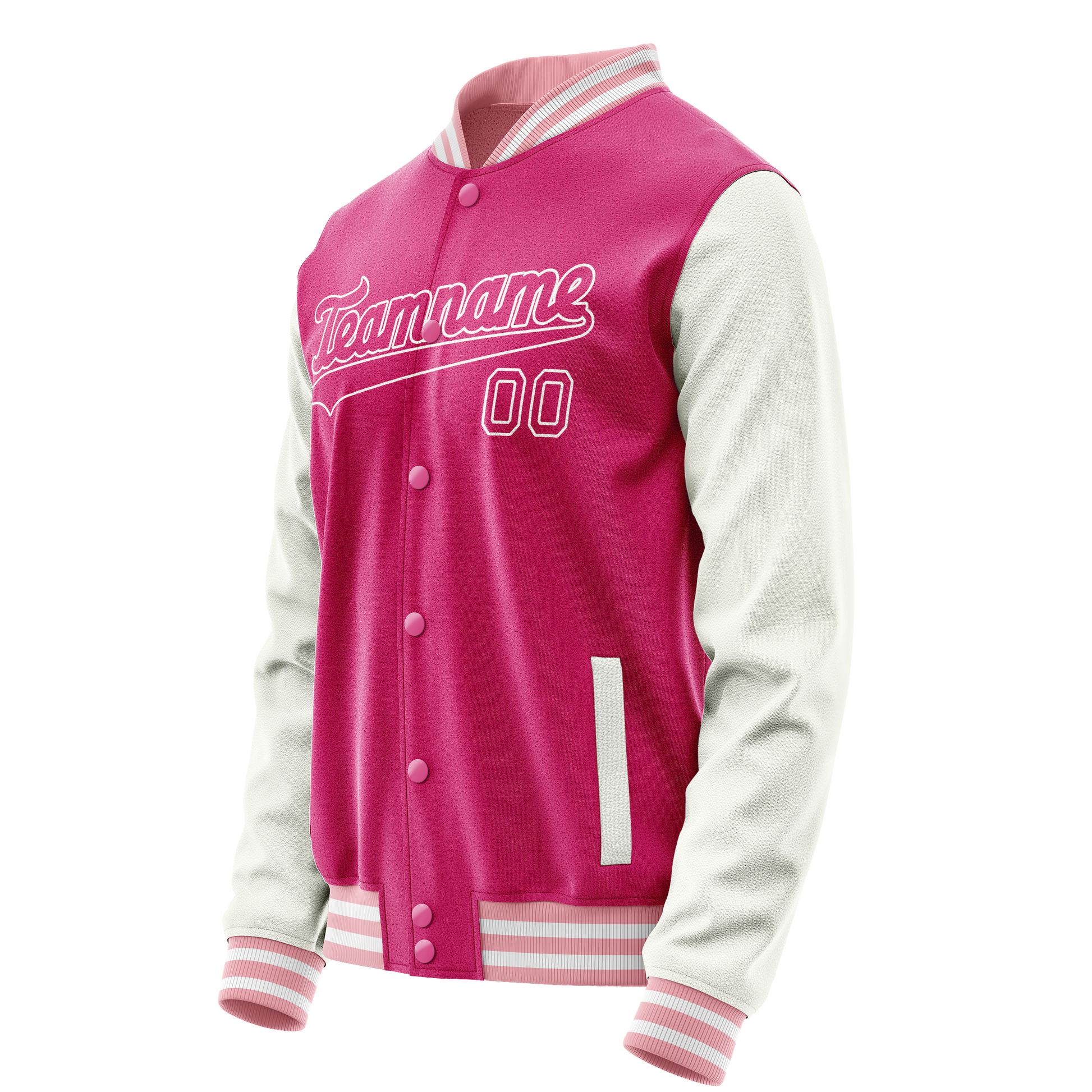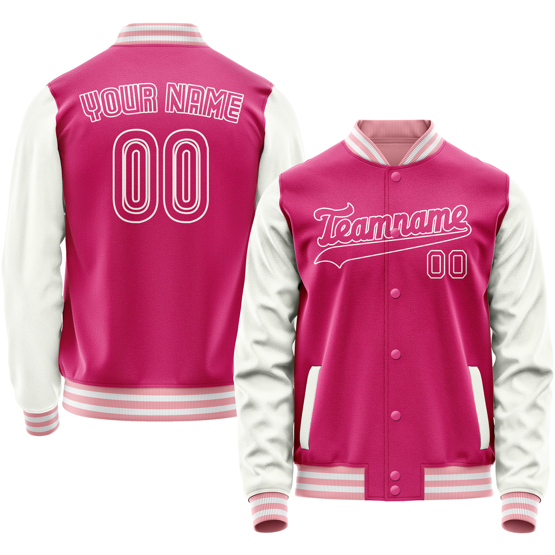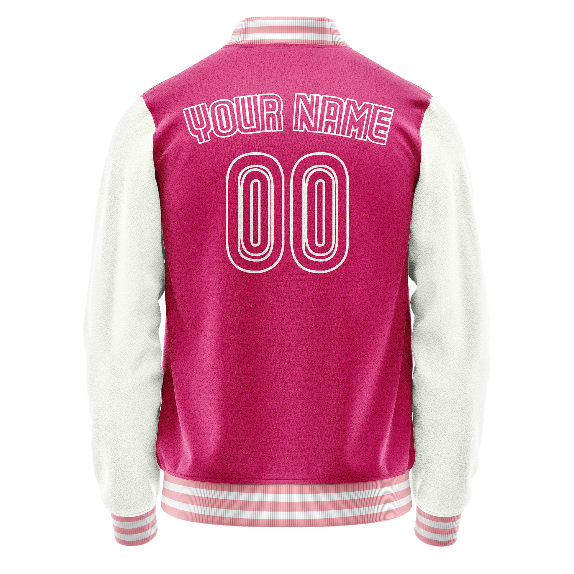 Custom Pink White Solid Color Varsity Letterman Jacket